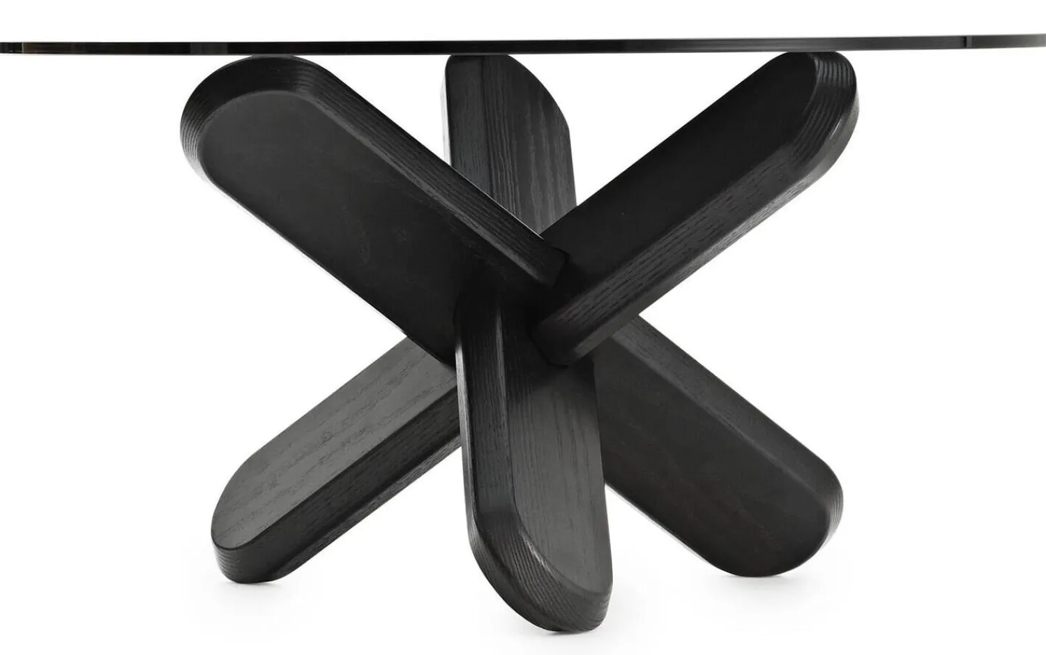 Ding-bordet er inspireret af ældgamle tredimensionelle hjernetrim-puslespil i træ. Bordet består ganske enkelt af tre ben lavet af egetræ, der er samlet uden skruer og værktøj af nogen art. Når de er sat sammen udgør de en skulpturel knude, der fungerer som basis for en eksklusiv glasbordplade. Benene er afrundet med affasede kanter, så bordet står solidt på gulvet og den runde glasplade sidder solidt på bunden. Ding bordet fås med enten klar eller røget glas bordplade, og med valg af tre forskellige bentyper er der rig mulighed for at finde lige præcis den stil, der passer til din indretning og smag. Du kan for eksempel kombinere en klar glasbordplade med ben i natur for et rent og nordisk udtryk, eller skrue op for intensiteten med en røget bordplade i fede koralfarvede eller markante sorte ben.