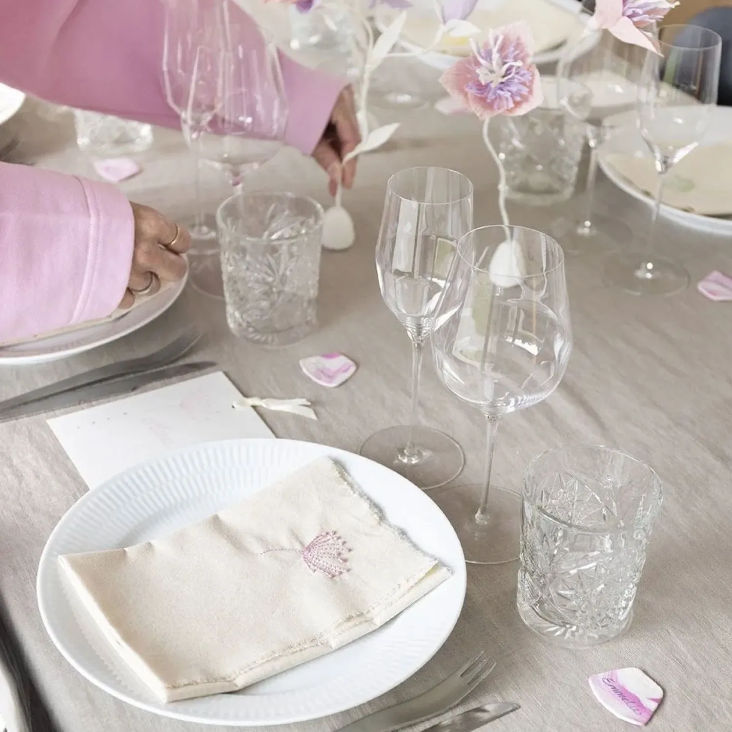 Med dette kit kan du skabe indbydende bordpynt, som er både kreativ og personlig. Indeholder materialer nok til seks kuverter, og al den vejledning du behøver.Er du også typen, der elsker et veldækket bord? Så er dette kit perfekt. Her får du alt, hvad du skal bruge til at skabe sammenhæng i din borddækning – lige fra smukke bordkort og håndskrevne menukort til broderede servietter og fine blomster i crepe. Det hele spiller sammen i både farver og udtryk – og du ender med et stemningsfuldt bord, som inviterer til masser af hygge.Indhold: Bomuldsstof, broderitråd, nål, crepepapir, blomsterstænger, lim, Fine Clay, udruller, udstikker, karton, farveblyanter, bånd.