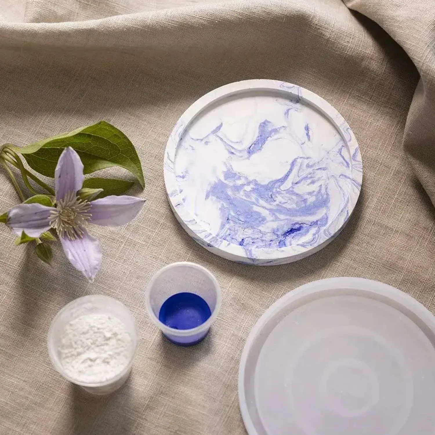– DIY Kit Resin Støbning, blå, hvid, Rund bakke med marmorering, 1 pk.*Creativ Company Best