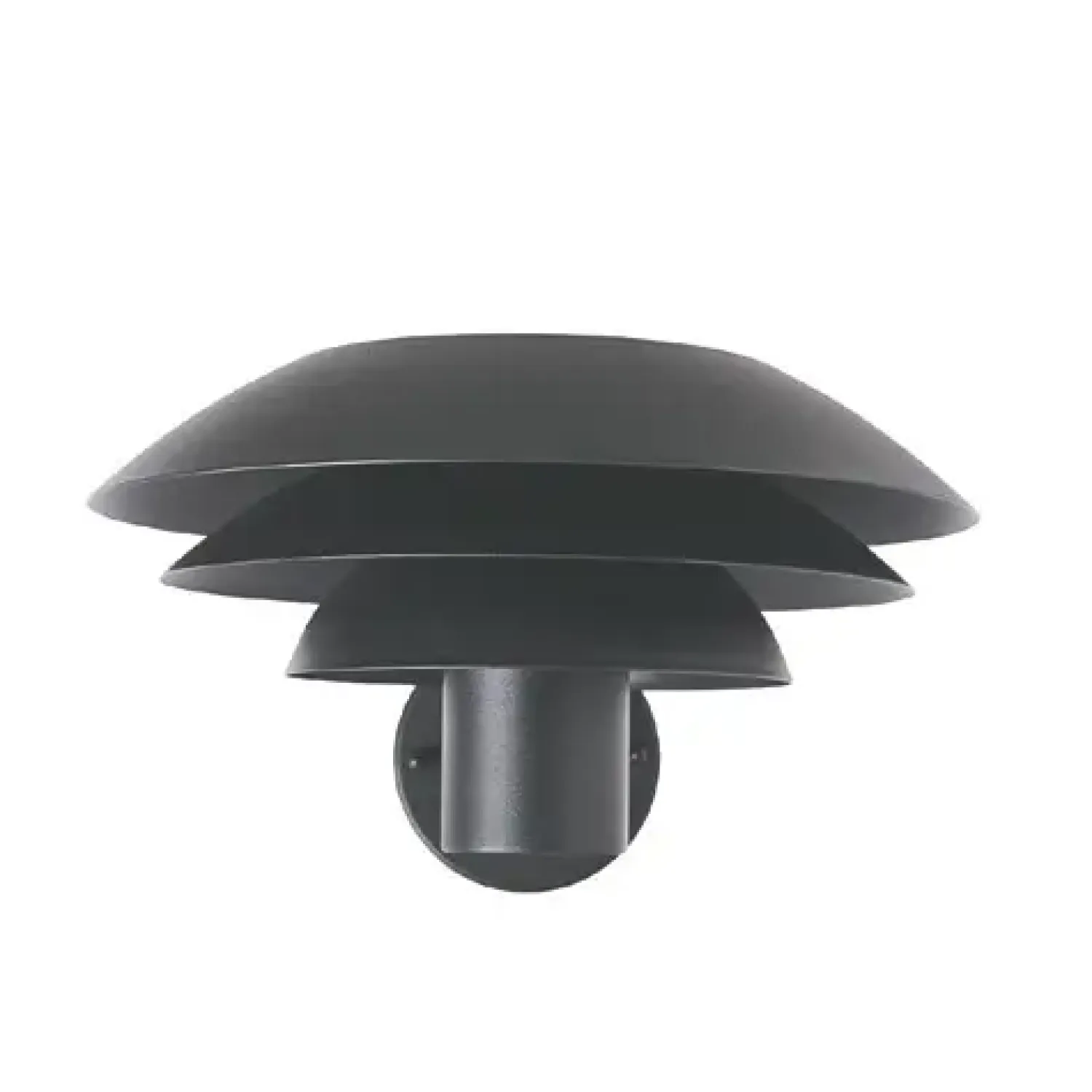 Dyberg Larsen – DL25 udendørs væglampe – Sort er fremstillet af rustfrit stål, et materiale valgt for dets evne til at modstå skiftende vejrforhold. Den matte sorte finish giver lampen et diskret udseende, der kan integreres i forskellige udendørsmiljøer. Med en diameter på 26,4 cm og en højde på 16,2 cm har denne væglampe en størrelse, der er designet til at give passende belysning uden at dominere facaden. Lampens form er udviklet med henblik på at kunne anvendes i forskellige arkitektoniske sammenhænge.