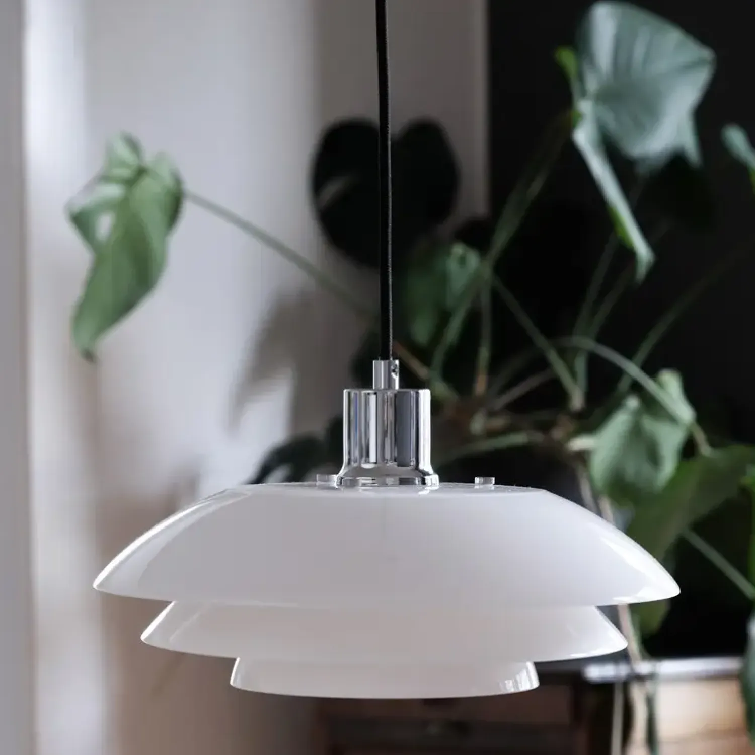 DL31 Opal pendlen giver en varm og hyggelig belysning med sin elegante skærm af mundblæst opalglas. Ideel til at hænge over spise- eller køkkenbordet.