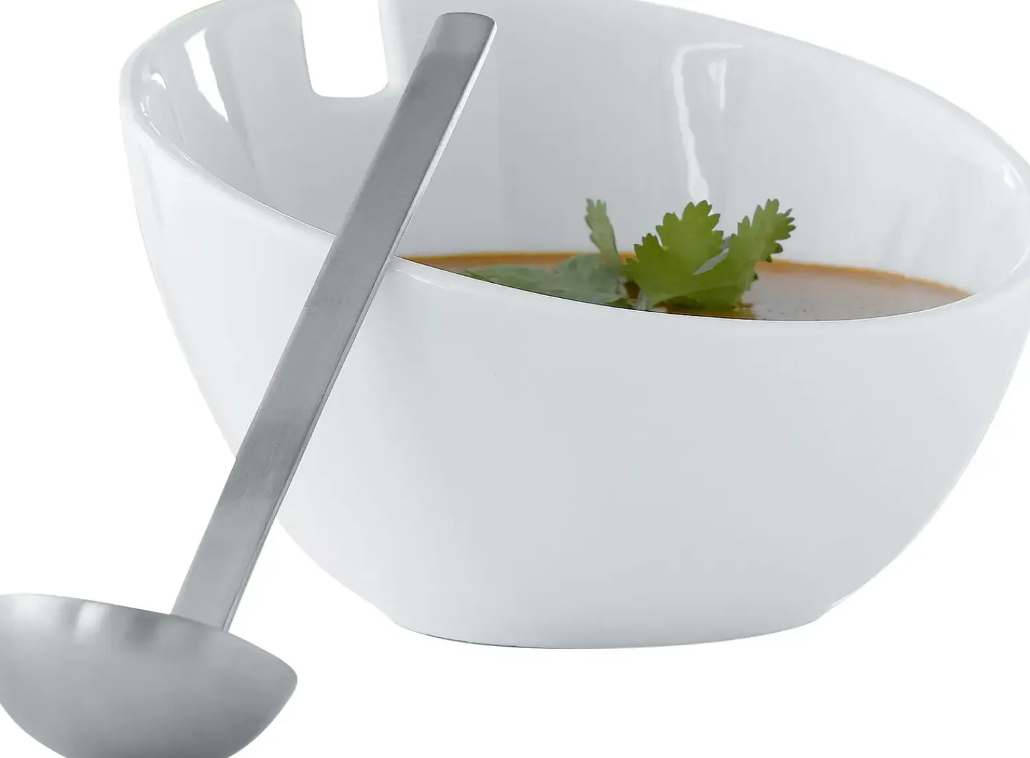 Denne hvide porcelænsskål med matchende opøserske i rustfrit stål gør det nemt at servere dressinger og saucer. Det gennemtænkte design holder skeen på plads, så du slipper for at fiske den op af skålen under serveringen.