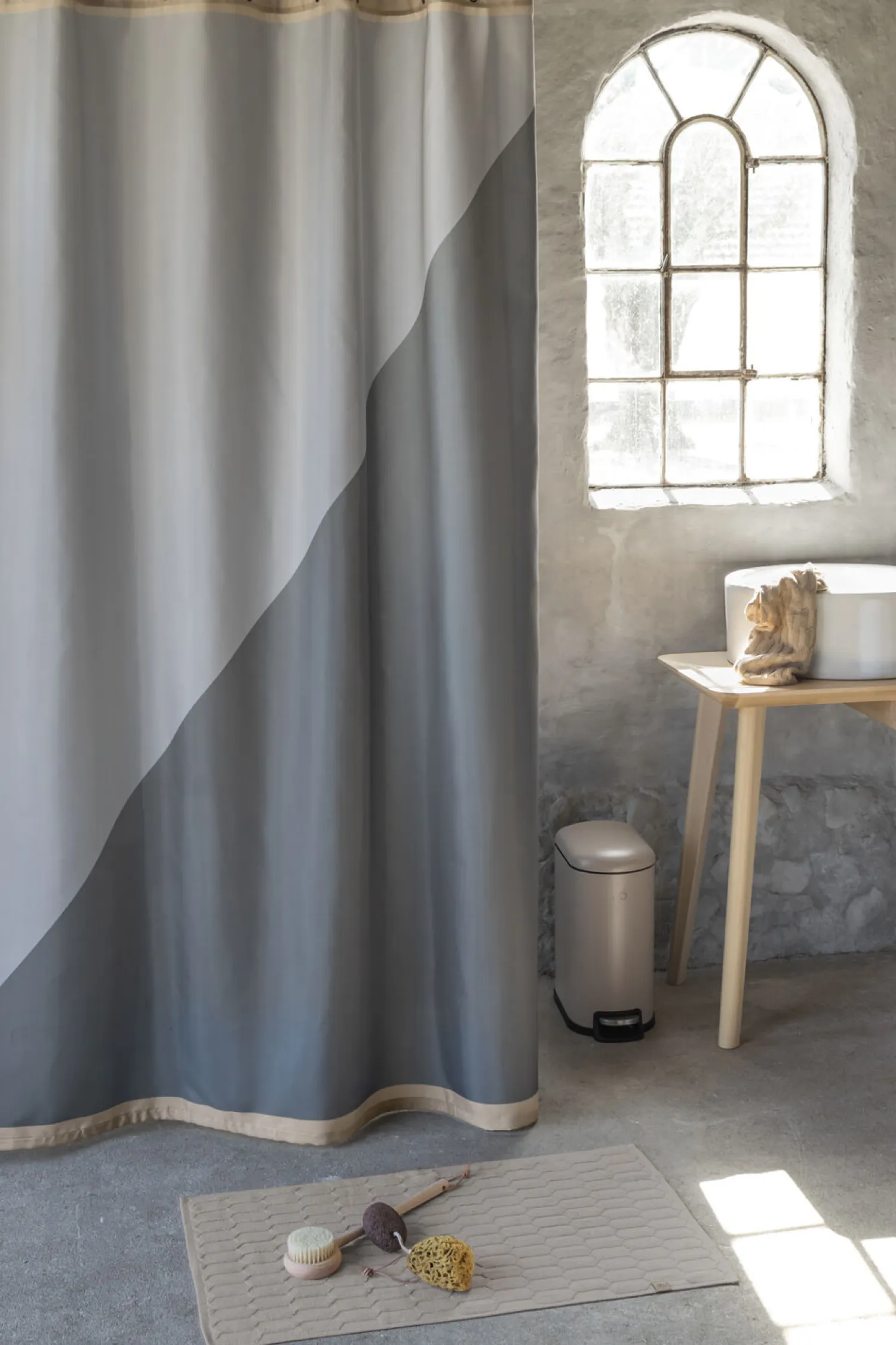 Badeforhænget er fremstillet i 100 % polyester og er skimmel- og vandafvisende. Badeforhænget har sorte metalringe og fås i størrelse 150 x 200 cm.