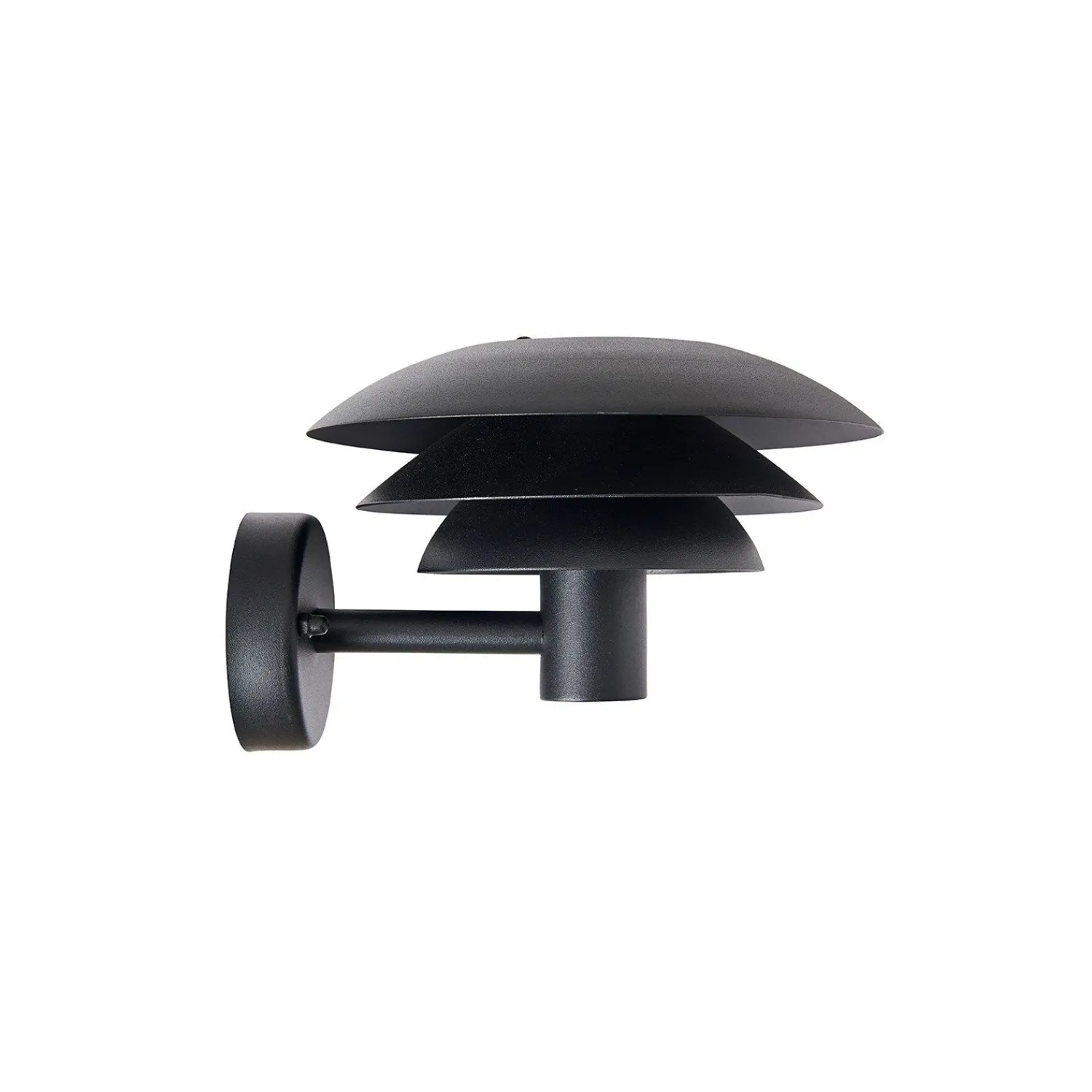 Dyberg Larsen – DL20 væglampe udmærker sig ved sin gennemtænkte konstruktion. Den cirkulære base sikrer en stabil montering på væggen, mens den tre-lagede, skiveformede lampeskærm bidrager til lysfordelingen. Lampens design er skabt til at fordele lyset effektivt over områder som hoveddøren, postkassen eller navneskiltet. Den sorte finish giver lampen et sofistikeret udseende, der komplementerer både moderne og klassiske bygningsfacader. Med en diameter på 20 cm er lampen tilpas stor til at gøre en visuel forskel uden at dominere facaden, hvilket gør den velegnet til både små og store udendørsarealer.