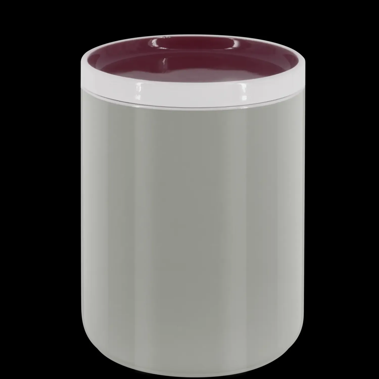 Præsenter dine madvarer i denne rummelige Edda porcelænsdåse, der forener stil og funktionalitet. Den cylindriske form, som giver dåsen dens karakteristiske udseende, den lyse grå yderside og den kontrastfyldte mørkerøde inderkant skaber et sofistikeret udtryk, der harmonerer med både moderne og klassiske køkkener. Indersiden er mørkerød ved den øverste kant, som afsluttes med en hvid kant. Denne store dåse er designet til at imødekomme behovene hos den organiserede køkkenentusiast, der sætter pris på både æstetik og praktisk anvendelse.