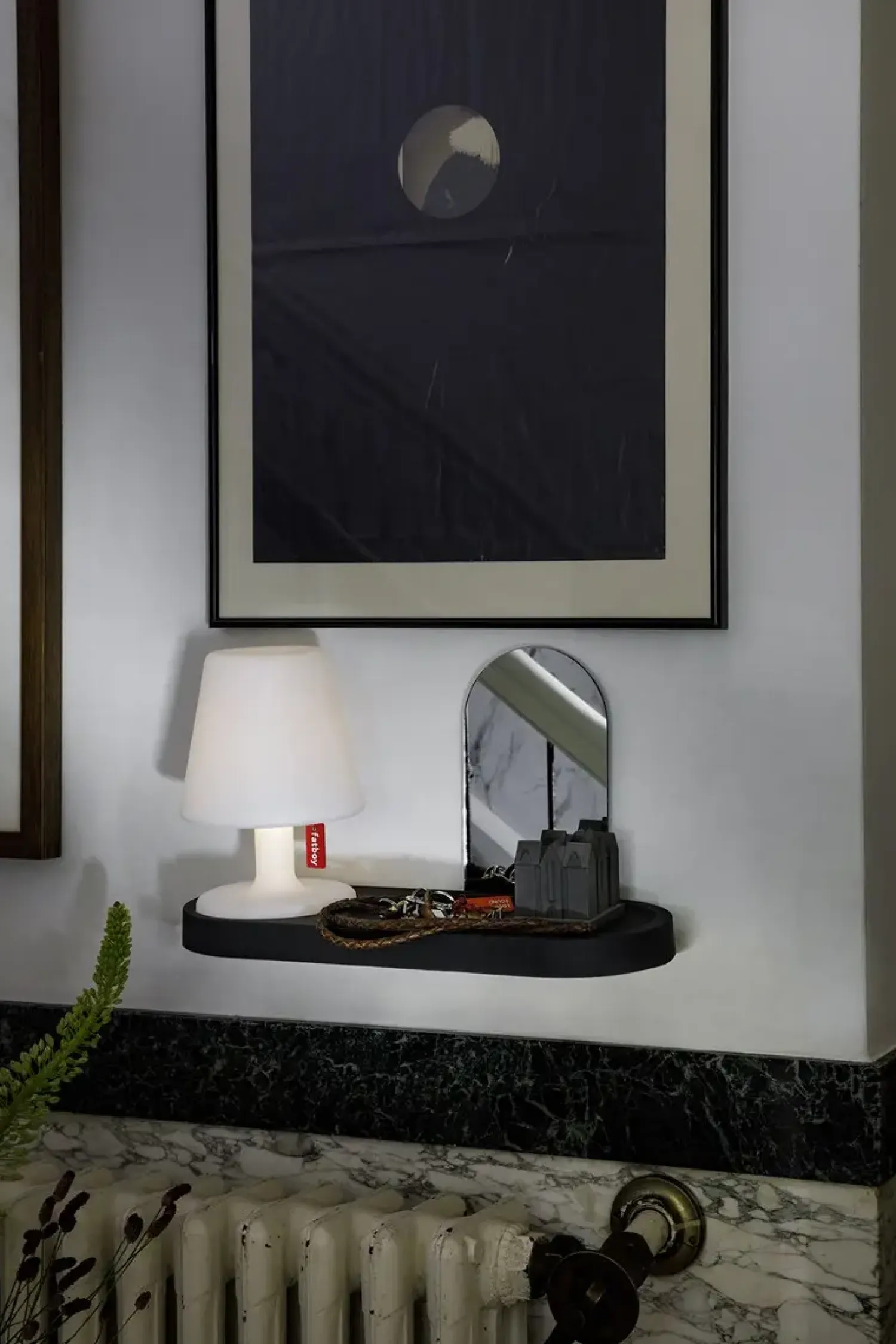 Denne grønne Fatboy væghylde er både praktisk og elegant. Den er let at montere, enten ved at stille den ovenpå et møbel eller ved at hænge den på væggen med den skjulte konsol. Hylden er ideel til opbevaring af småting som nøgler, så du altid ved, hvor de er.