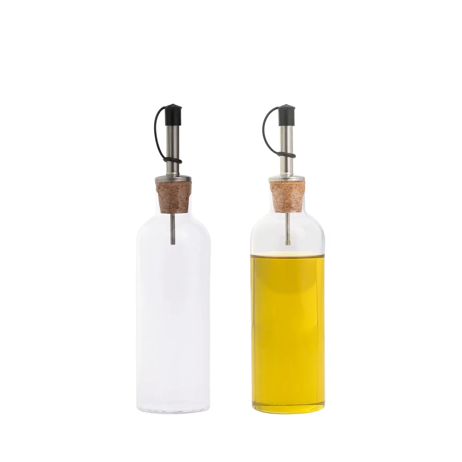 Dette sæt indeholder to flasker, der gør det nemt at opbevare olie og eddike separat i dit køkken. Hver flaske måler 5 x 20,5 cm og er fremstillet af glas med korkpropper og metaldetaljer, hvilket giver både funktionalitet og et naturligt udtryk på køkkenbordet.