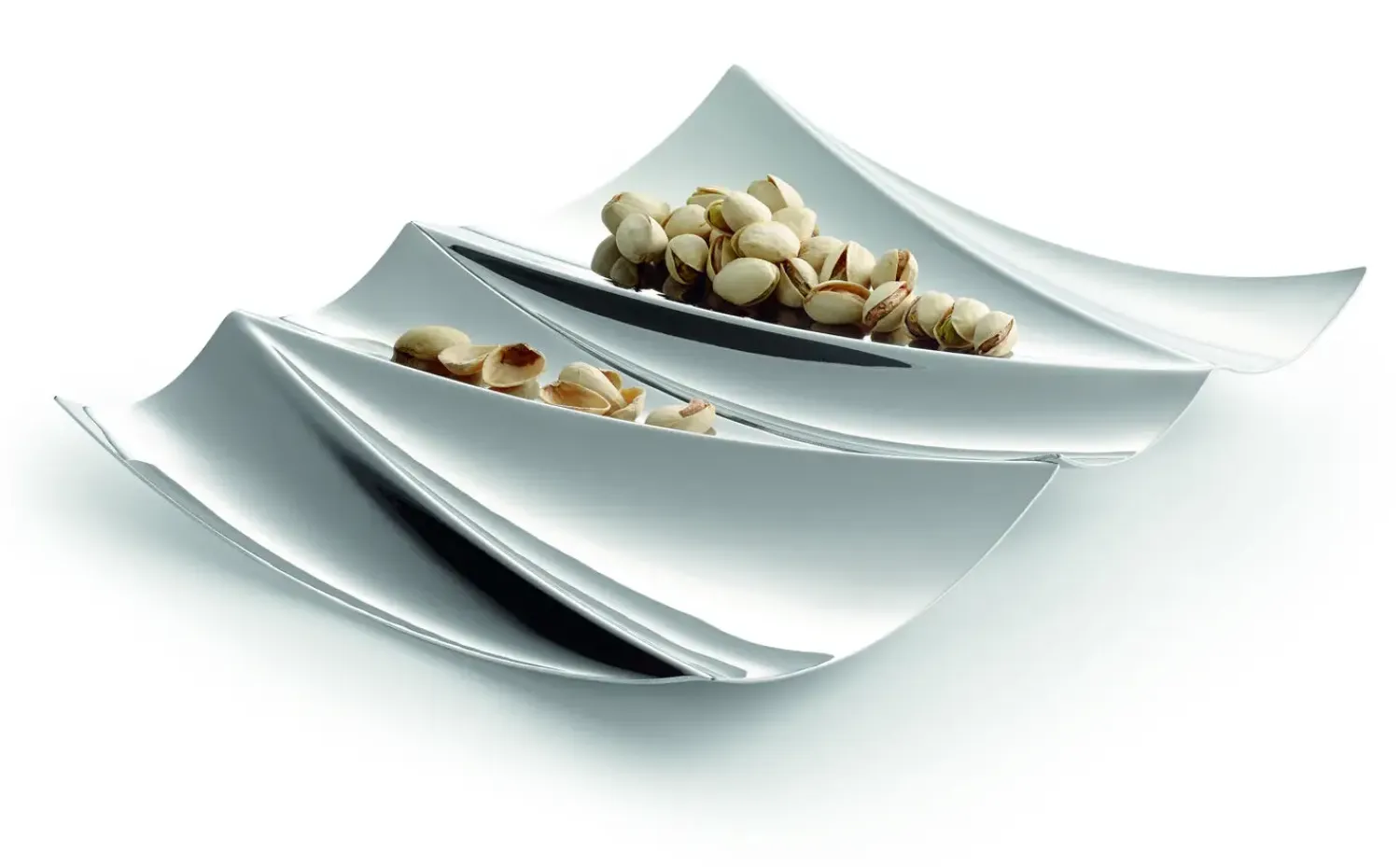 Løft din servering med Philippi – Elbphilharmonie snackskåle. Dette sæt kombinerer funktionalitet med et sofistikeret design, der tilføjer et eksklusivt præg til din borddækning. Inspireret af den ikoniske Elbphilharmonie koncertsal i Hamborg afspejler skålenes form og finish bygningens bølgende arkitektur og skinnende glasfacade.
