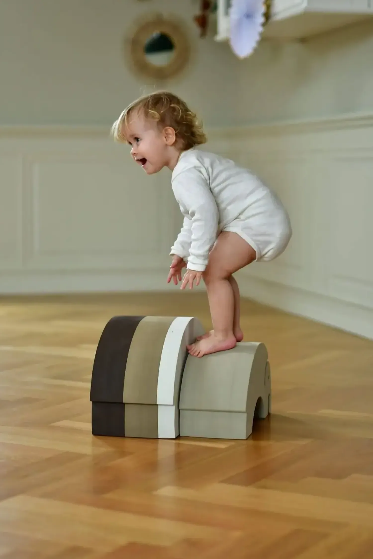 Når dit barn bruger elefanten til balance- og vippeaktiviteter, træner det kropsbeherskelse, koordination og styrke. De fire forskellige anvendelsesmuligheder giver variation i bevægelsesmønstre og udfordrer forskellige muskelgrupper. Dette gør elefanten til mere end legetøj – den bliver en naturlig del af barnets fysiske udvikling gennem leg.