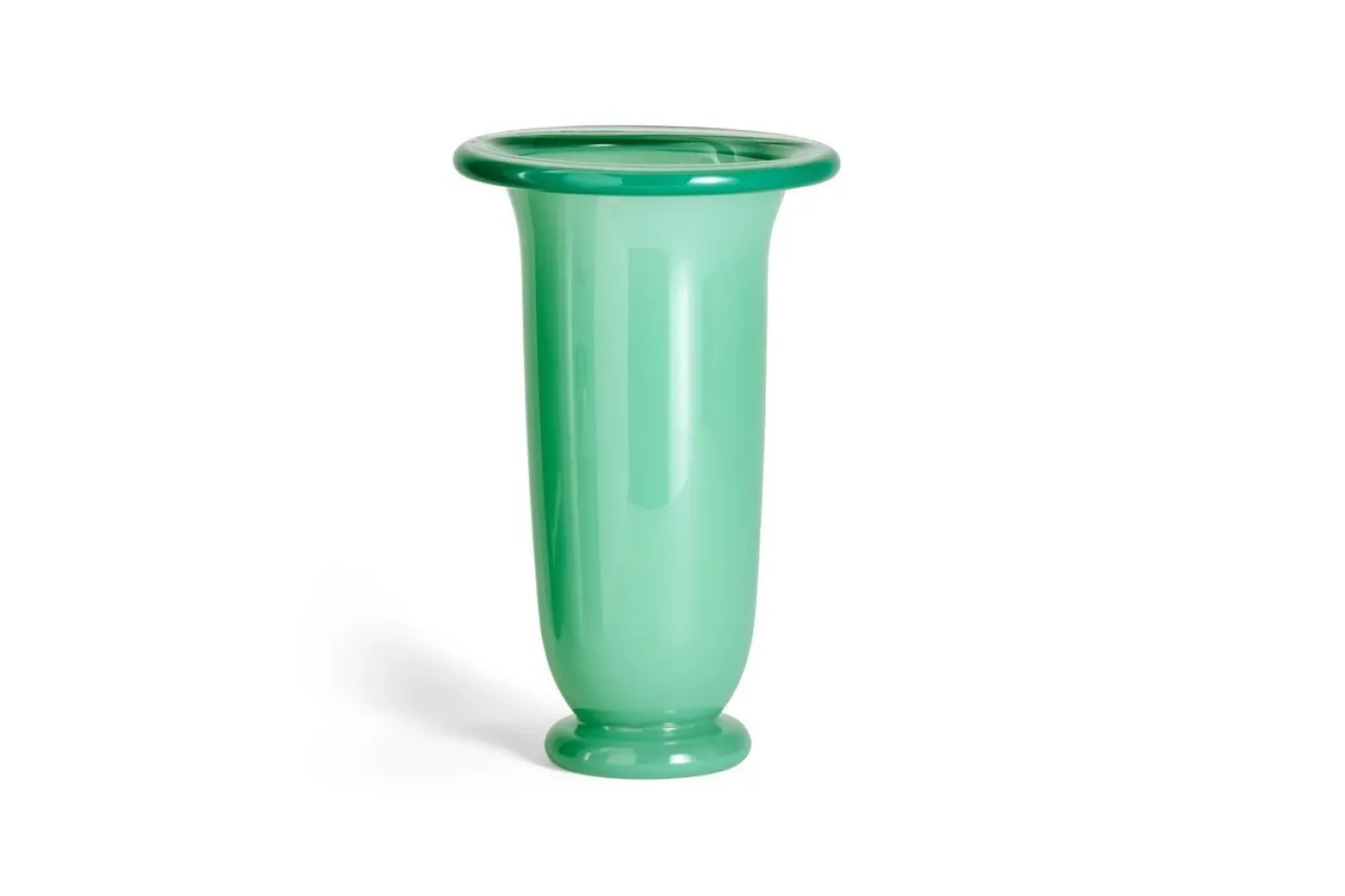 Denne store, grønne vase er en stilfuld tilføjelse til ethvert rum i dit hjem. Med sin elegante grønne farve og mørkegrønne kant tilføjer den et strejf af natur og ro til din indretning. Uanset om du placerer den på et bord eller en hylde, vil den fange opmærksomheden med sit enkle, men sofistikerede design.