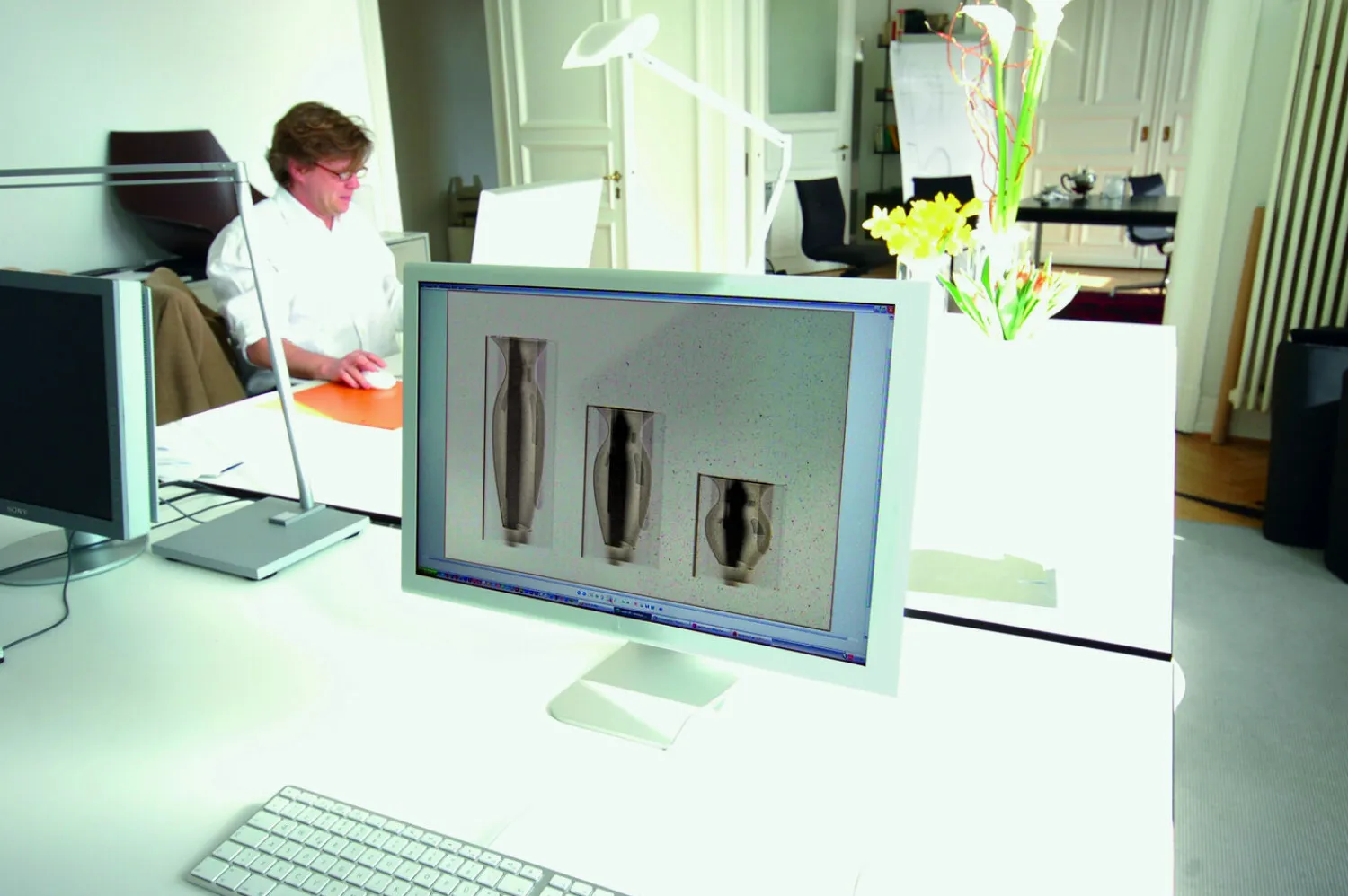 Den særlige dobbeltlagsstruktur består af en indre vase, som er omsluttet af en gennemsigtig ydre beholder. Dette design skaber en visuel effekt, der fremhæver både vasens indhold og dens overordnede udformning.