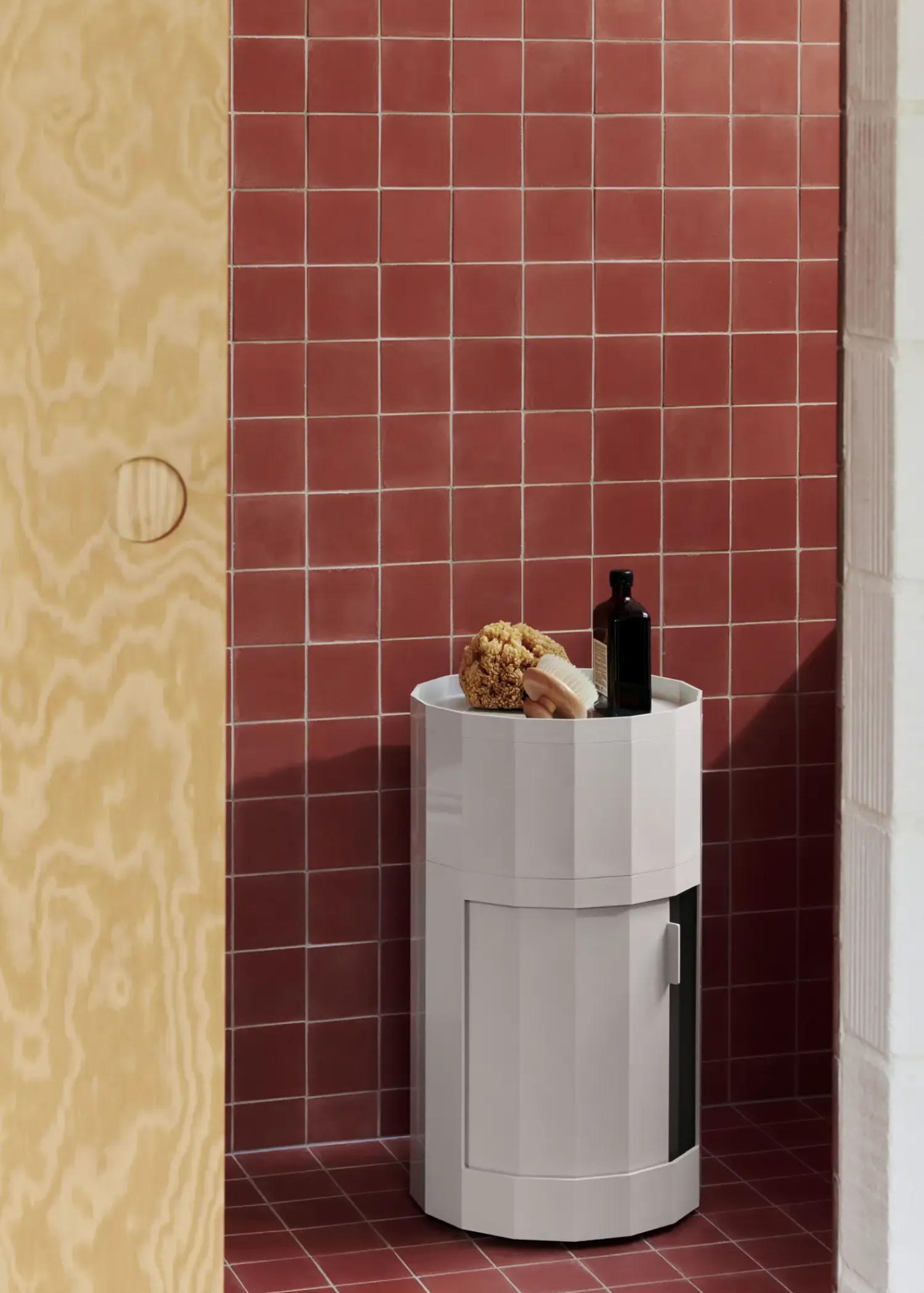 Det segmenterede ydre i Misty Grey skaber et interessant spil i overfladen, der passer til moderne indretning. Skabets cylindriske form giver mulighed for placering, der tilpasses din daglige brug.