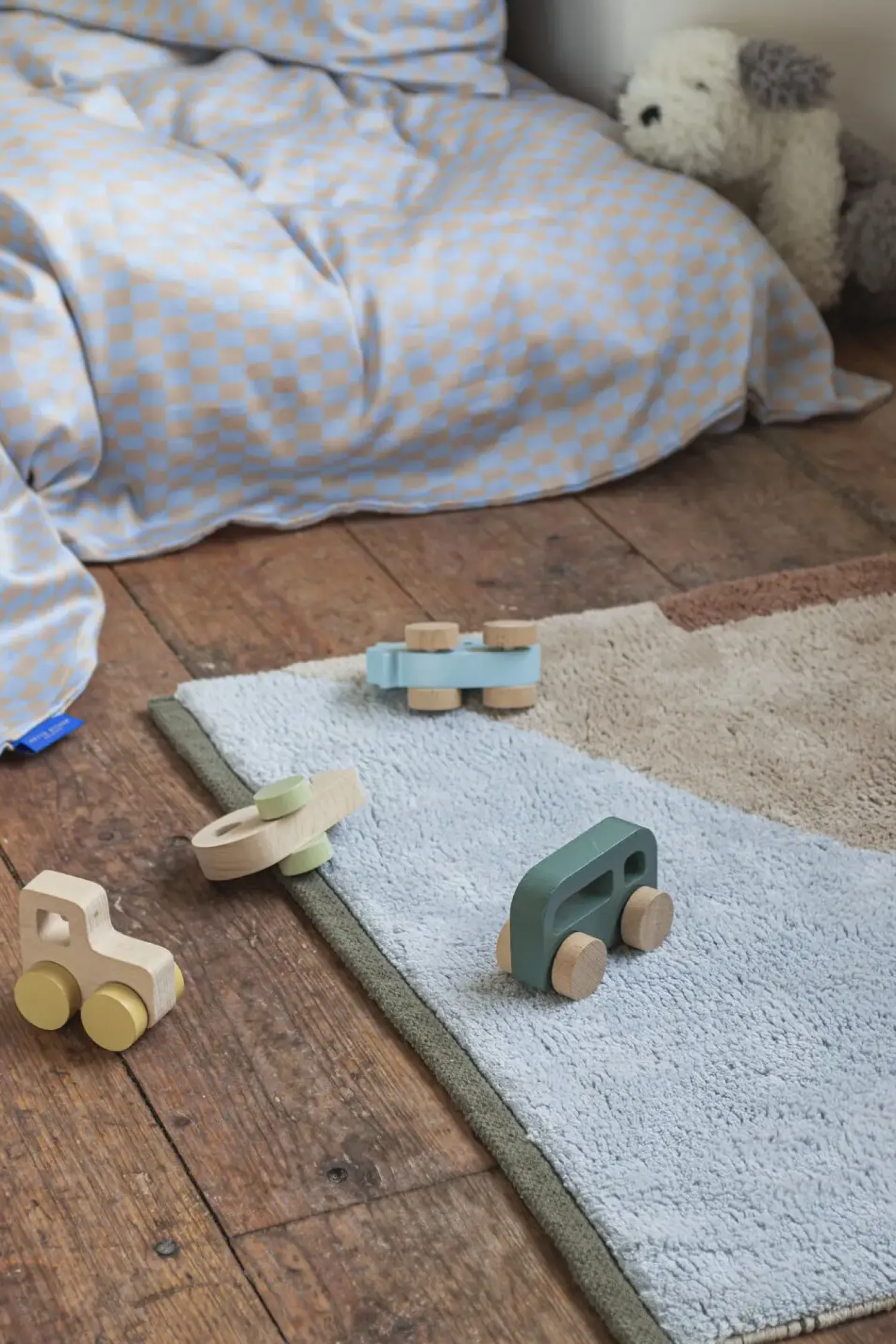 Den store FIGURA-måtte i farven light blue, er en dekorativ og praktisk måtte med et kunstnerisk touch. Farvesammensætningen og den tuftede overflade trækker tråde til 70’ernes ryamåtter, mens det grafiske design og de jordnære toner tilfører varme og blødhed til ethvert rum. Den bløde, tuftede overflade gør måtten utrolig behagelig at træde på – perfekt ved sengen, i stuen eller som et farverigt indslag i børneværelset.Måtten har en skridsikker bagside af latex, hvilket også gør den ideel til badeværelset. En signaturblok med kontrasterende former og farver bryder det organiske mønster og tilfører et legende element. TIP: Brug måtten som vægdekoration for at forbedre akustikken og give rummet et personligt, kunstnerisk udtryk.