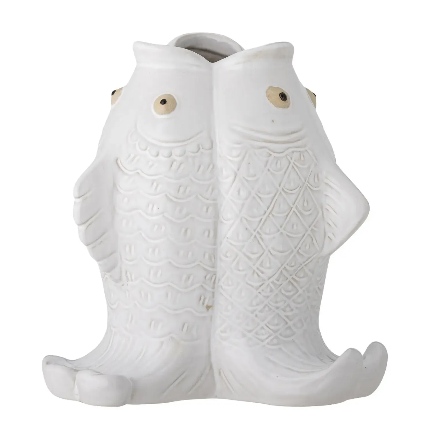 Fili Vasen fra Creative Collection er lavet af stentøj i en hvid farve. Inspireret af havet forestiller vasen tre fisk, der tilføjer et humoristisk og karakteristisk element til enhver indretning. Dekorativ både med og uden blomster.