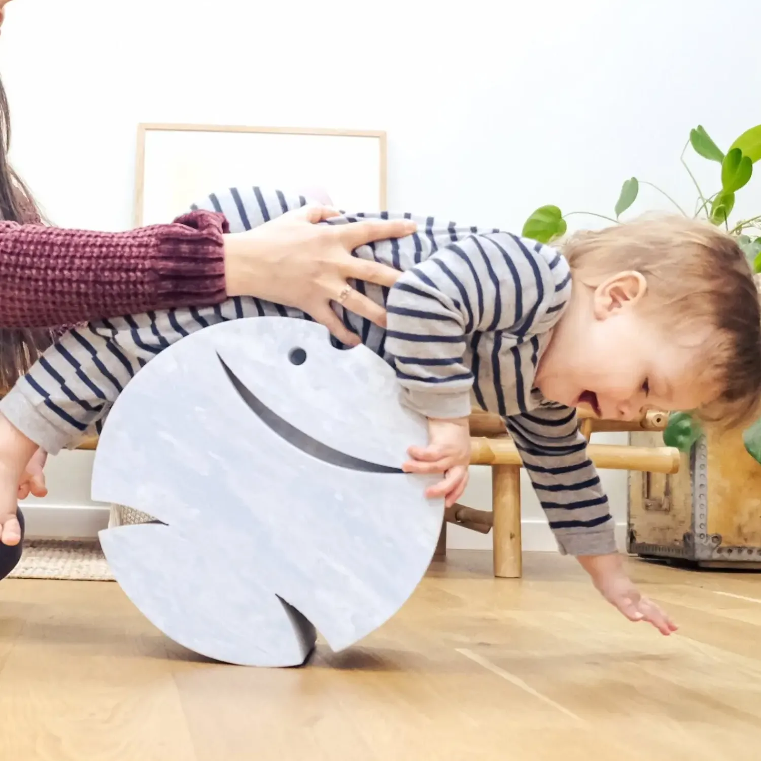 Fisk L Mist styrker børns kropsbevidsthed og motorik gennem aktiv leg. Fremstillet af slidstærkt EVA-skum fungerer den som skammel, vippe og balanceelement – tre funktioner i ét produkt. Den vipper i alle retninger, hvilket giver variation i bevægelserne og udfordrer balancen.