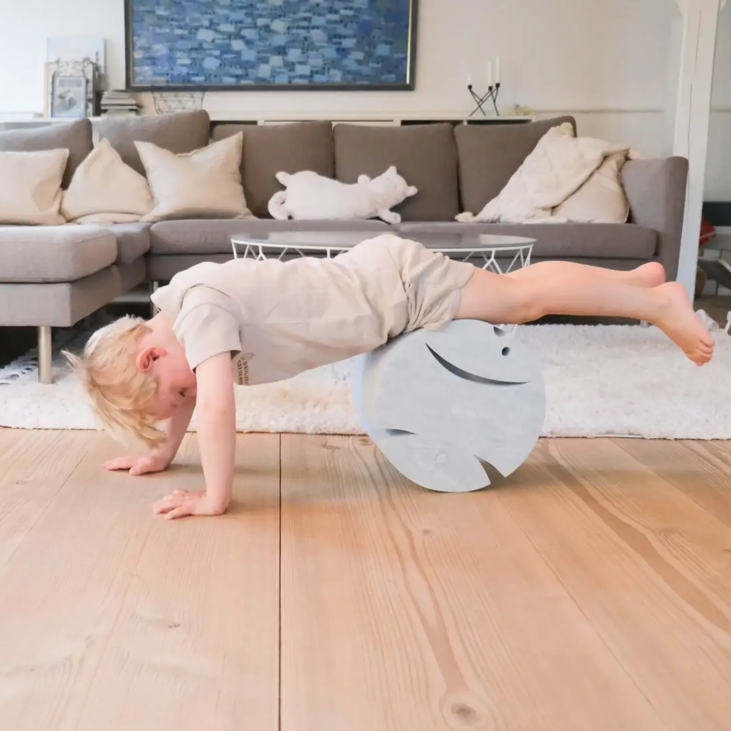 Den bløde, skridsikre overflade holder produktet på plads under brug, så børn kan vippe og balancere uden at møblet glider. EVA-skummet giver en behagelig kontaktflade, der er blid mod børns hud og tøj, samtidig med at materialet tåler daglig brug.