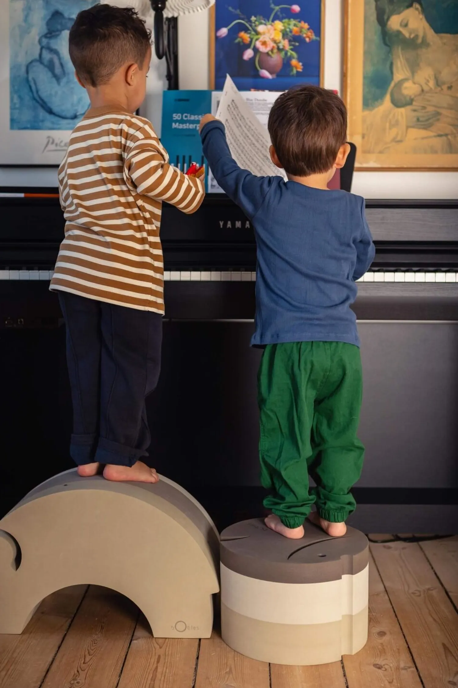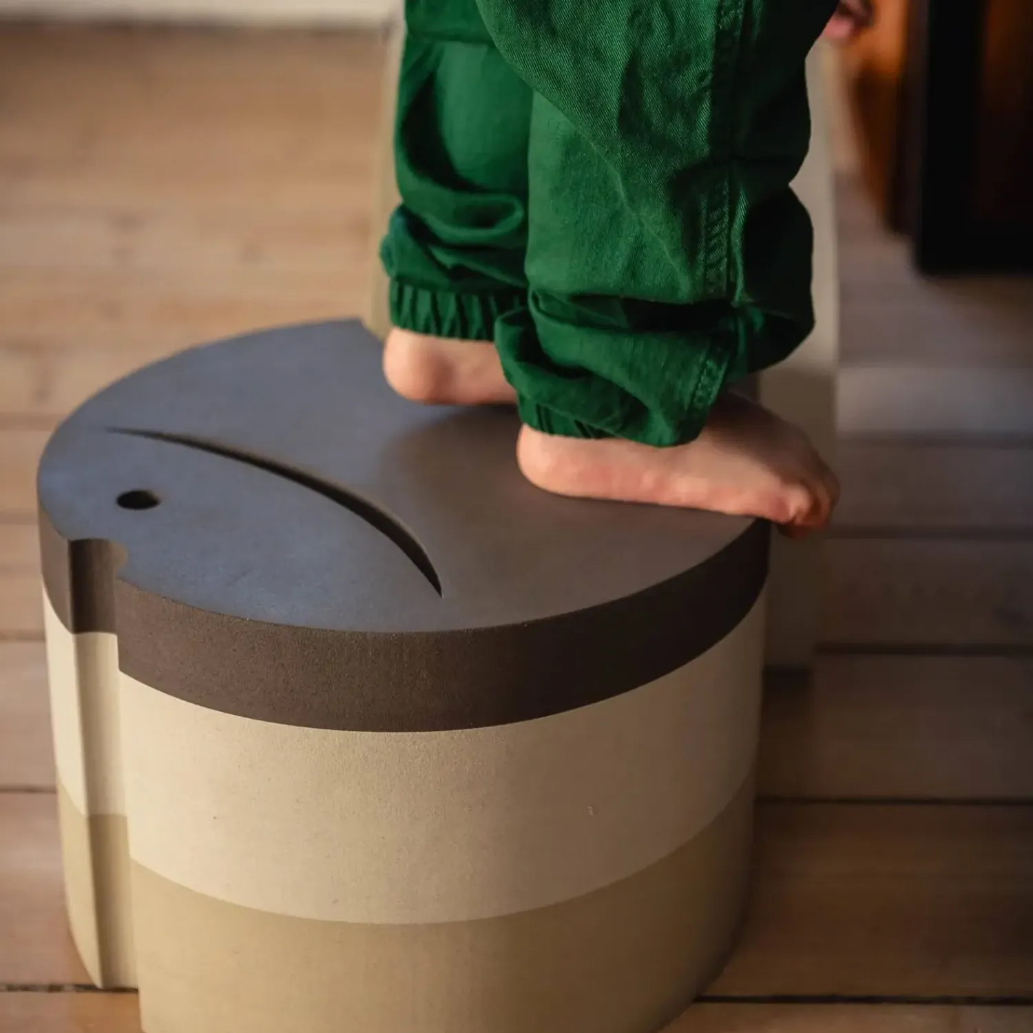 Med sin stabile størrelse og karakteristiske form er Fisk L perfekt som skammel, vippe og balanceelement, og den kan bruges overalt i hjemmet – ved håndvasken, i køkkenet, som del af en tumlebane eller blot som et roligt sted at sidde.