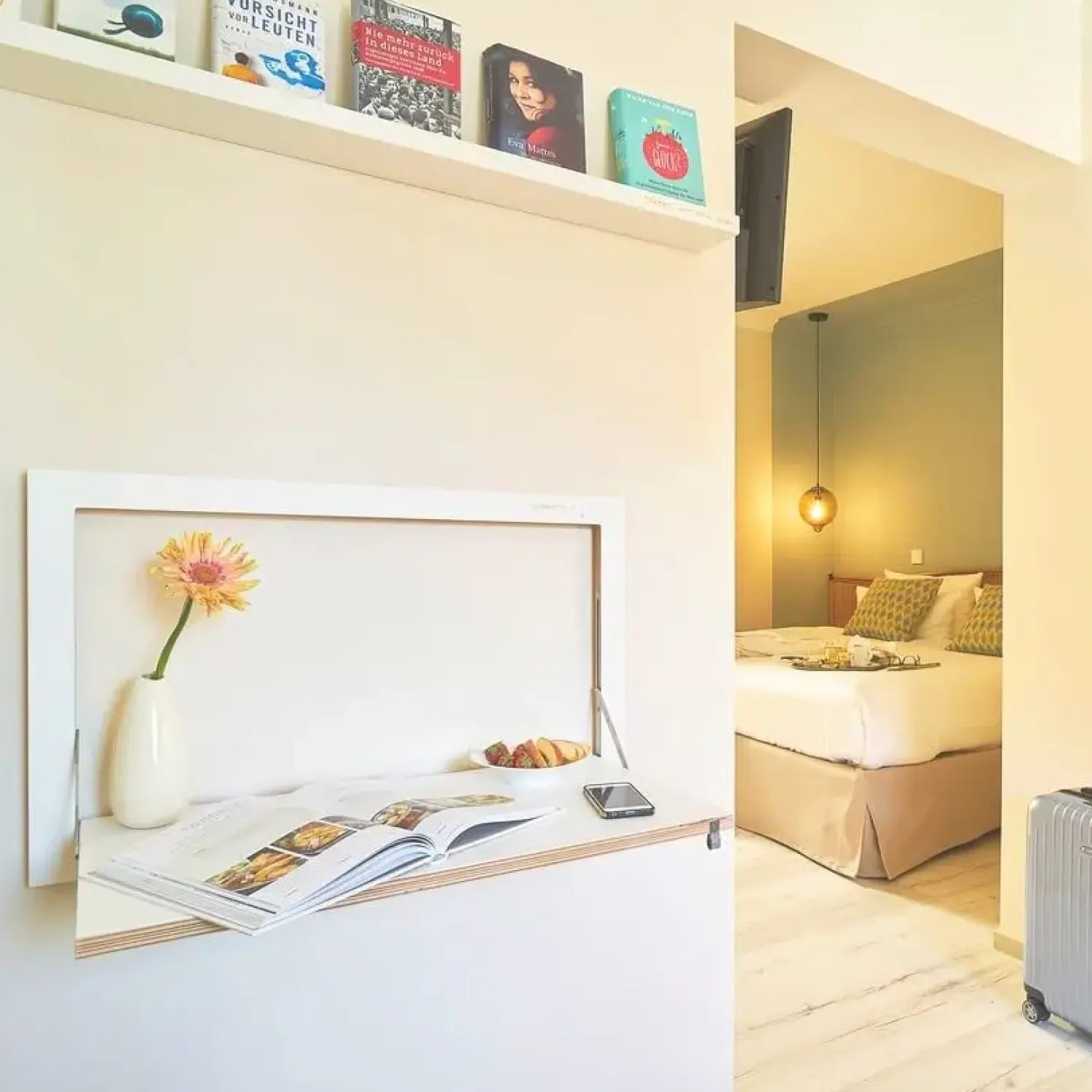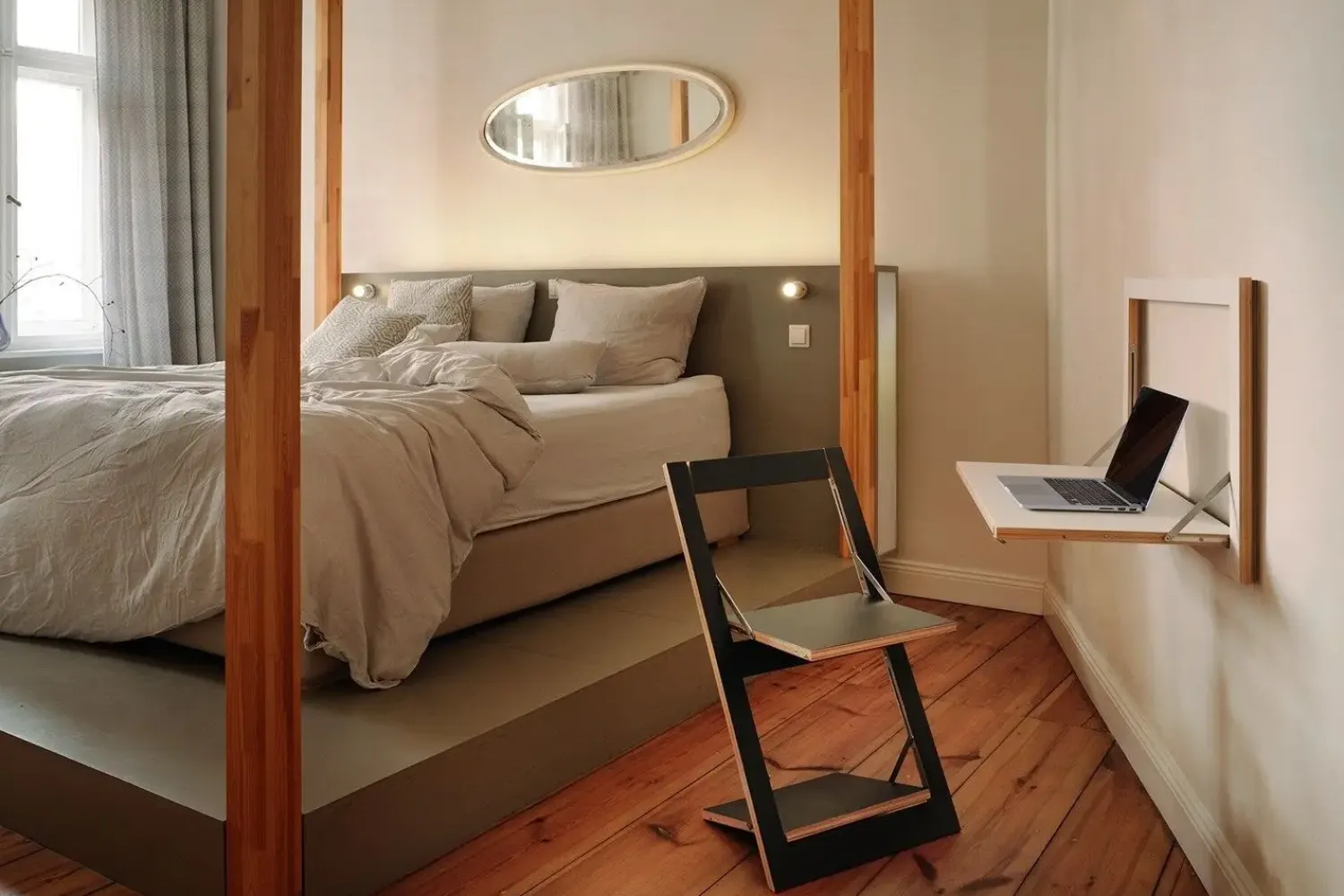 Super skøn arbejdsstation fra Ambivalenz. Kan bruges som hylde, skrivebord eller kreativ arbejdsstation. Er også ideel til børneværelset, hvor der ikke er plads til et stort skrivebord. Fold ud når du har brug for det og op igen, når du er færdig. Fås i hvid og sort.