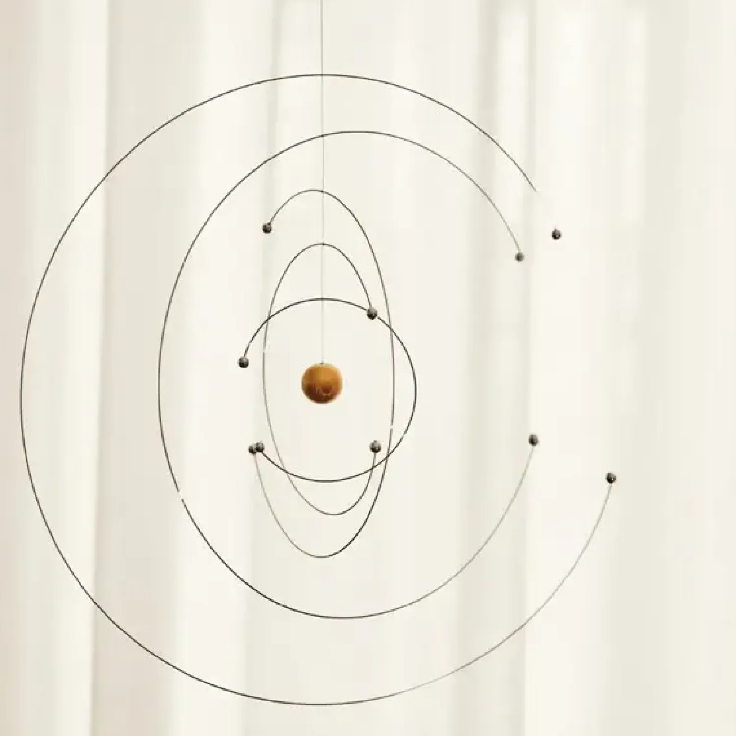 I anledning af Niels Bohrs revolutionerende atommodels 100-års fødselsdag har Flensted Mobiles designet denne flotte Niels Bohr mobile i samarbejde med Niels Bohr Instituttet. Med sit enkle udtryk passer uroen ind i ethvert hjem.
