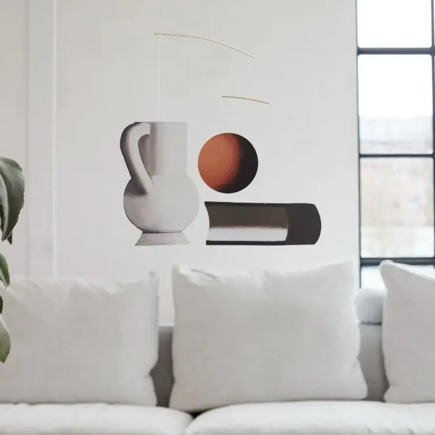 “Lundstrøm 1932″ er en moderne mobile inspireret af vor Vilhelms Lundstrøms mest kendte maleri ”Opstilling med hvid kande, appelsin og bog” . Maleriet er en del af Statens Museums samling. Mobilen er udført med en kærlig hyldest til Lundstrøms følsomme geometri. Mobilen trækker de tre objekter ud, og lader dem roligt og respektfuldt bevæge sig rundt mellem hinanden.