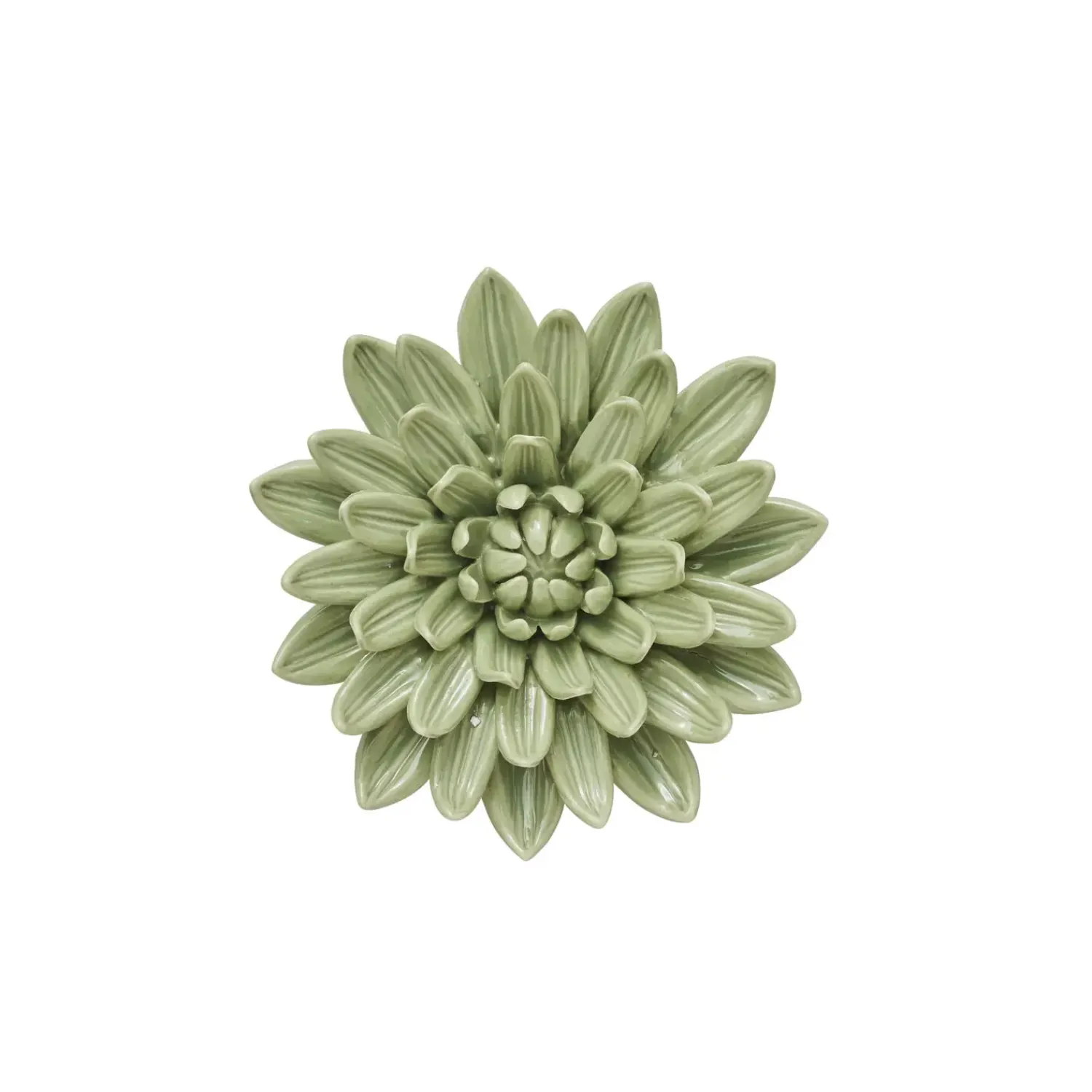 Smuk håndlavet Floria porcelænsvægblomst i farven støvet grøn, der måler 13X13 cm.