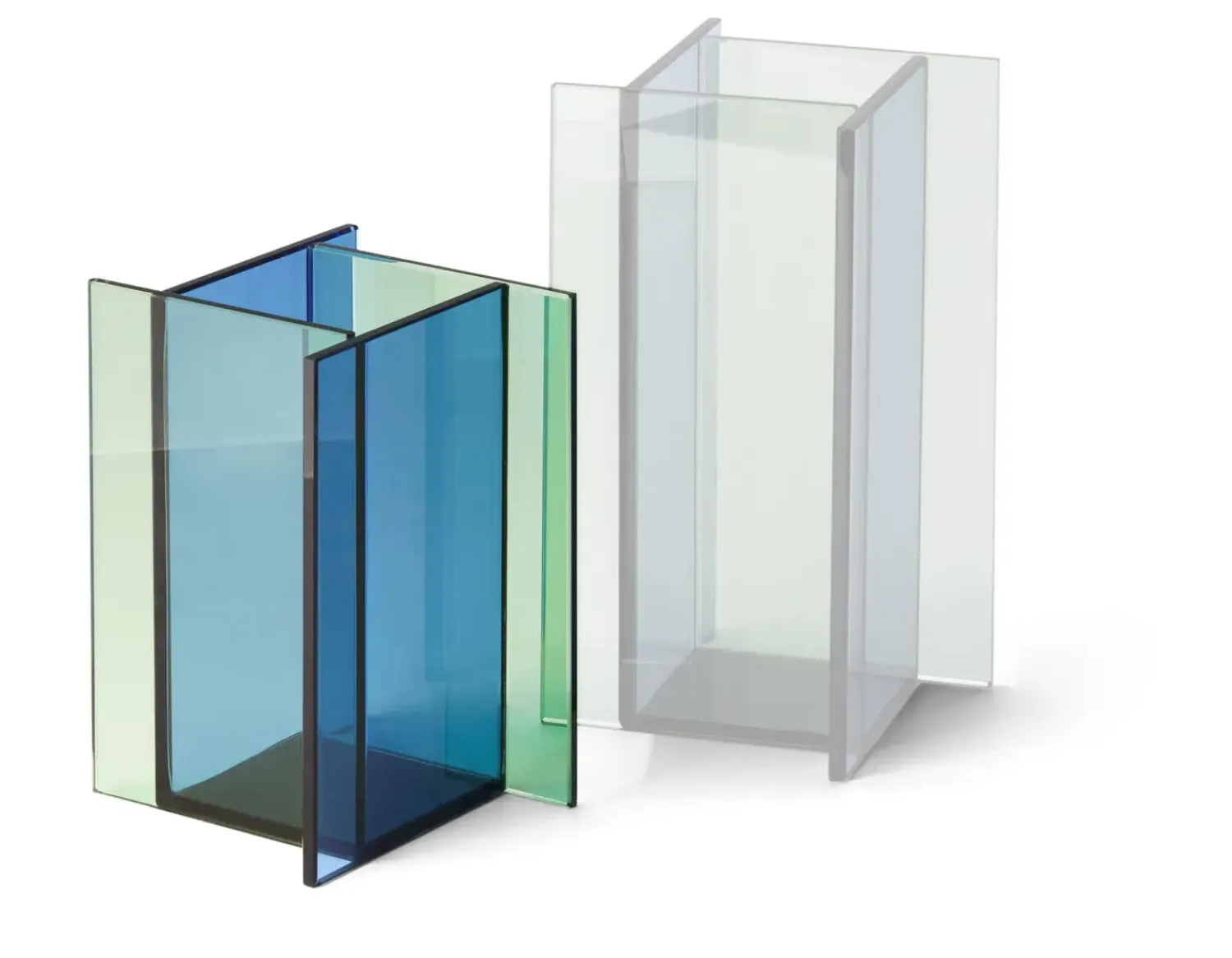 Fly vase S udmærker sig ved sin særlige konstruktion med overlappende paneler. Denne særprægede opbygning skaber et interessant visuelt udtryk, der kan variere afhængigt af synsvinklen. De solide glasark i to forskellige farver giver vasen dybde og karakter. Kombinationen af form og materiale gør vasen til et bemærkelsesværdigt stykke, der kan tiltrække opmærksomhed i ethvert rum.