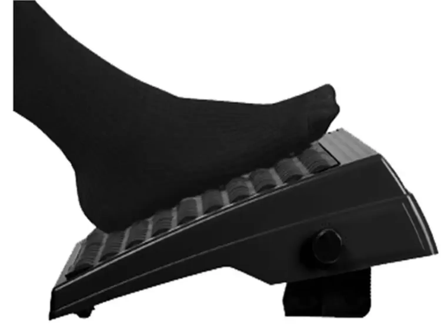 ORIGIN: Ergonomisk fodstøtte,udarbejdet i samarbejde med “Industrial Medicine” og fremstillet af 83% genbrugsmateriale. Hældningsgrader (10°, 15°, 20°). Muliggør en individuel indstilling for hvert trin. Den ujævne overflade giver fødderne en behagelig massage, der øger blodcirkulationen. Leveres med ISO 9241-5 standard. Overflade lavet af genanvendt ABS.