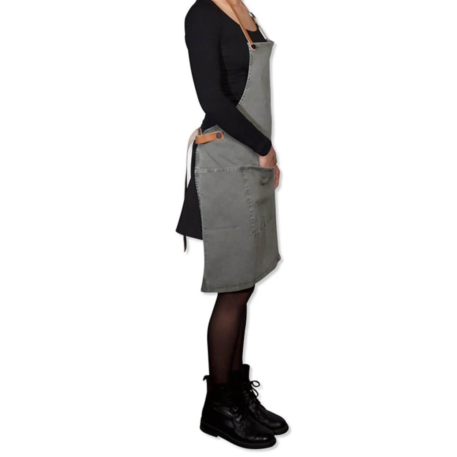 Dette karakteristiske BBQ-forklæde er det trendy forklæde til alle med en passion for grillning, god mad og mode. Forklædet i grillstil leveres med 2 karabinhager og har en løkke i taljeremmen til dit håndklæde og andet køkkenudstyr. Luk forklædet på ryggen med en bæltespænde. Karabinkroge og en løkke til dit håndklæde eller grilludstyr. Håndlavet i Holland. Én størrelse passer til alle. Fås i flere farver og materialer. Meget behagelig at have på. 100% økologisk bomuld + læderremme. Hvert BBQ-forklæde i kanvas og denim har sin egen unikke slidte vask. Maskinvask ved 40°C. (Fjern læderremmene først.)