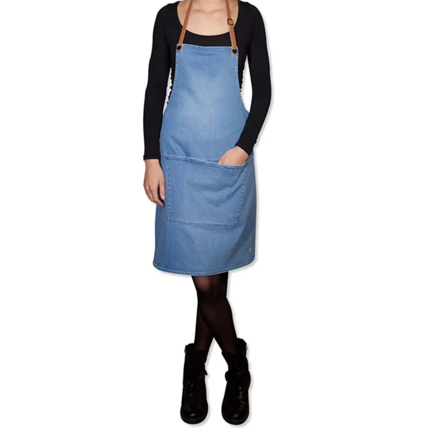 Dette karakteristiske BBQ-forklæde er det trendy forklæde til alle med en passion for grillning, god mad og mode. Forklædet i grillstil leveres med 2 karabinhager og har en løkke i taljeremmen til dit håndklæde og andet køkkenudstyr. Luk forklædet på ryggen med en bæltespænde. Karabinkroge og en løkke til dit håndklæde eller grilludstyr. Håndlavet i Holland. Én størrelse passer til alle. Fås i flere farver og materialer. Meget behagelig at have på. 100% økologisk bomuld + læderremme. Hvert BBQ-forklæde i kanvas og denim har sin egen unikke slidte vask. Maskinvask ved 40°C. (Fjern læderremmene først.)