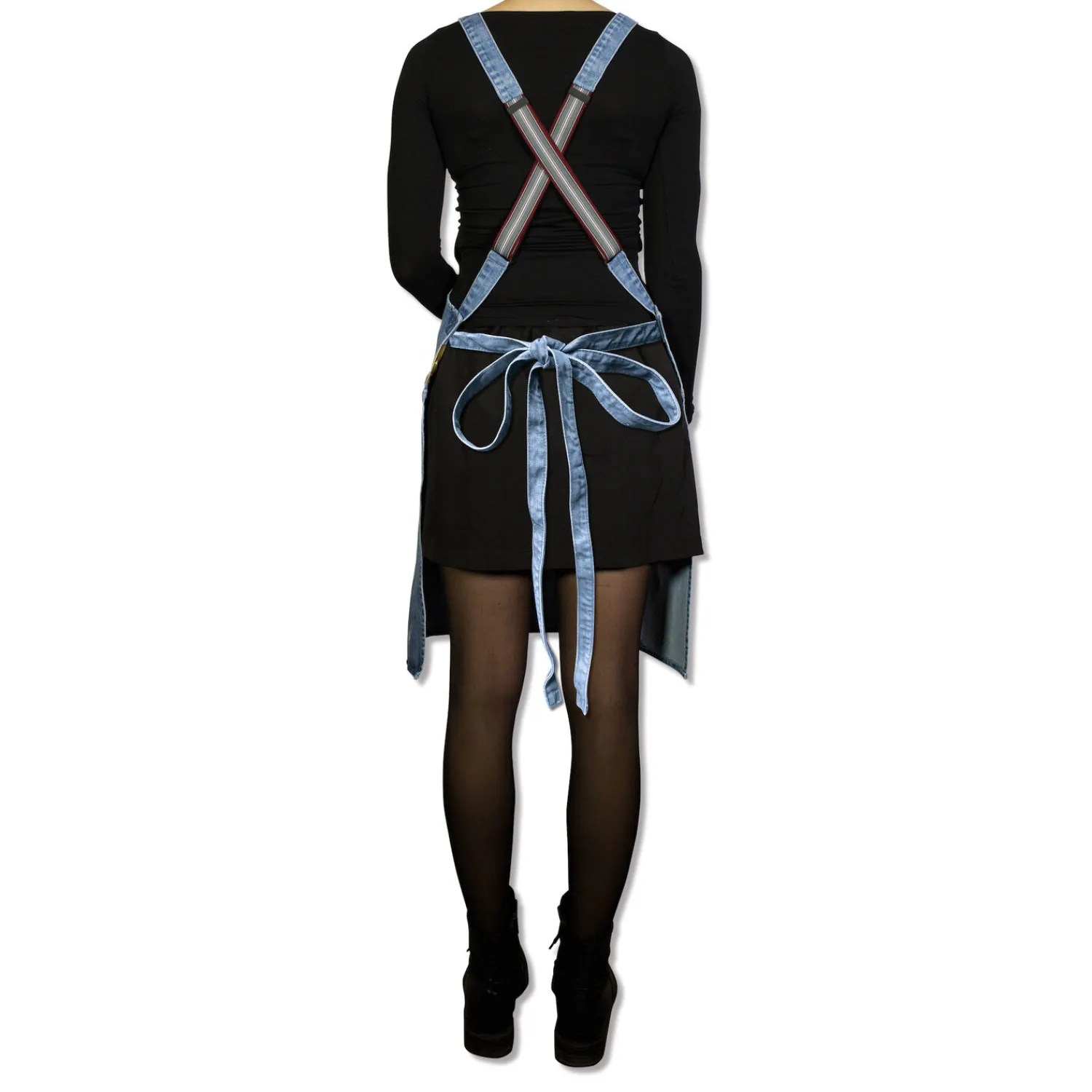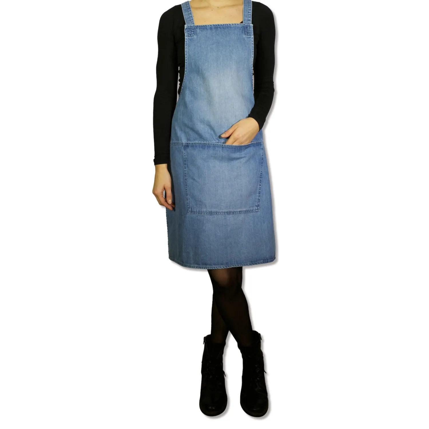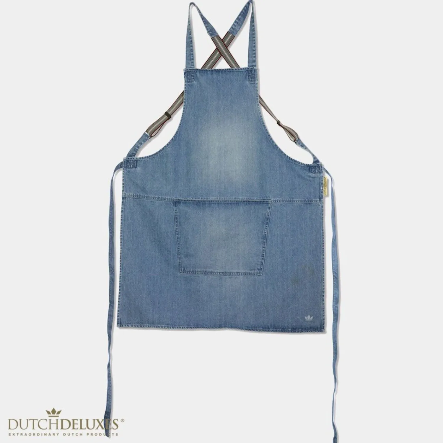 Forklædet med justerbare seler, der krydser ryggen, og stropper i taljen. Udvalgt af mange professionelle inden for hotel- og restaurationsbranchen og elsket af alle med en passion for køkken og god mad. Dette forklæde er super behageligt på grund af kombinationen af seler og materialer. Udover komforten vil du se professionel og moderigtig ud på samme tid. Justerbare seler med krydsede ryglæn. Håndlavet i Holland. Én størrelse passer til alle. Meget behagelig at have på. 100% denim. Maskinvask ved 40°C.