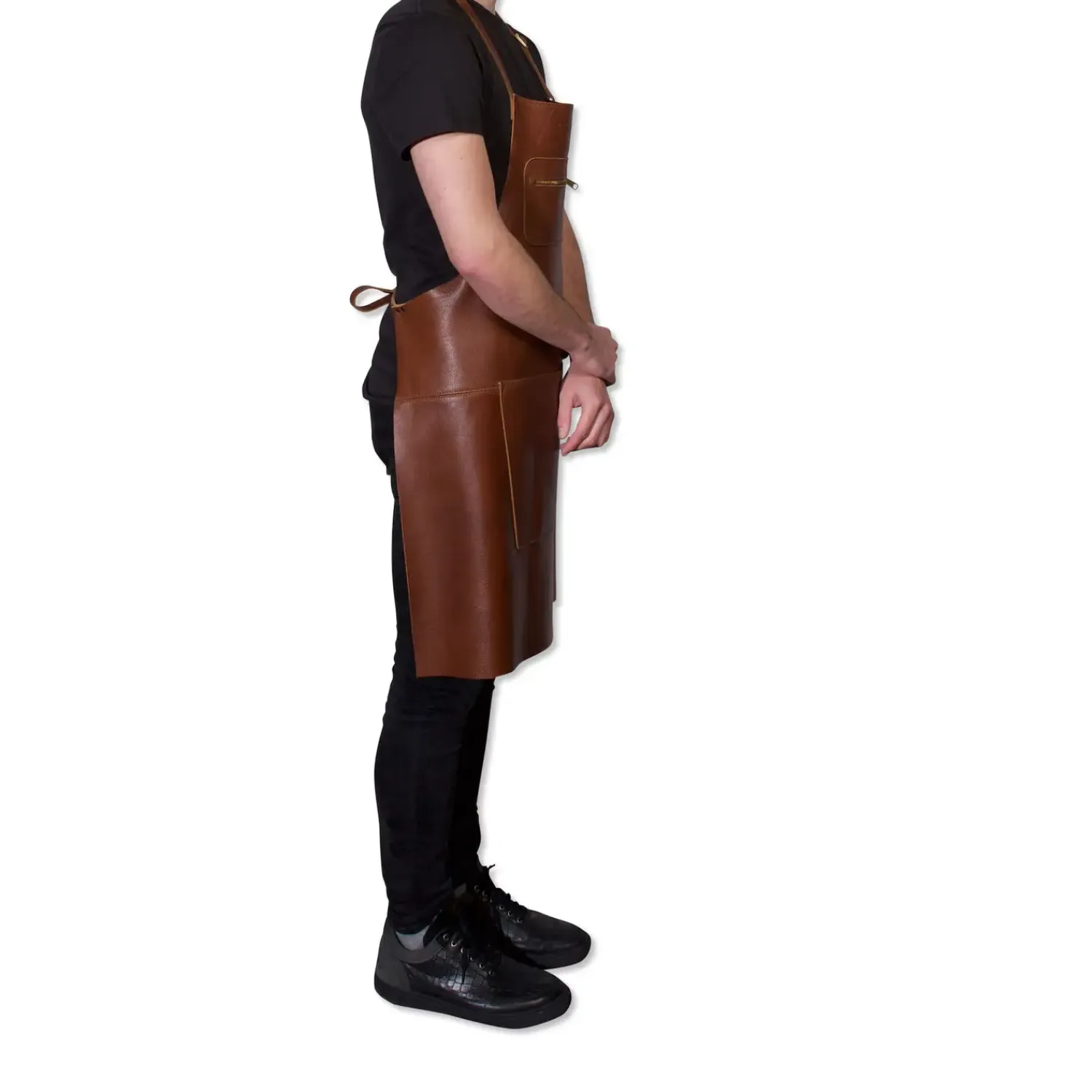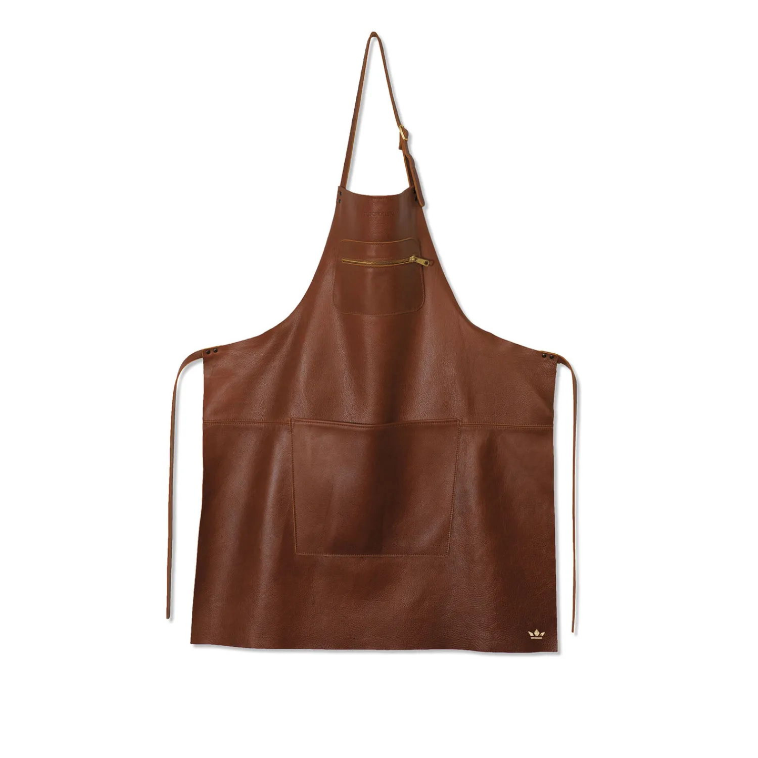Det klassiske og detaljerede design kombineret med 100% fuldnarvet læder, der draperer, gør lynlåsforklædet elegant OG meget behageligt at have på. For alle med en passion for mad og design. Forklædet har en lille lomme på brystet, som kan lukkes med lynlås. Færdig med en transparent vandafvisende belægning, der gør den nem at rengøre med en våd klud. Bind stropperne på ryggen for at lukke forklædet, én størrelse forklæde passer til de fleste. Håndlavet i Holland af fuldnarvet læder. Regelmæssig brug og tidens gang vil skabe en patina, en blød glans, der udvikler sig på læderets overflade, da det er et naturprodukt, der ældes. Hvilket gør forklædet smukkere, jo mere du bruger det! Lavet af REACH-certificeret spaltlæder – fri for skadelige kemikalier. 100% fuldnarvet læder med REACH-certifikat – fri for skadelige kemikalier. Færdig med vandafvisende belægning. To lommer til opbevaring af genstande, den ene med lynlås. Fås i 2 farver; klassisk brun og sort.