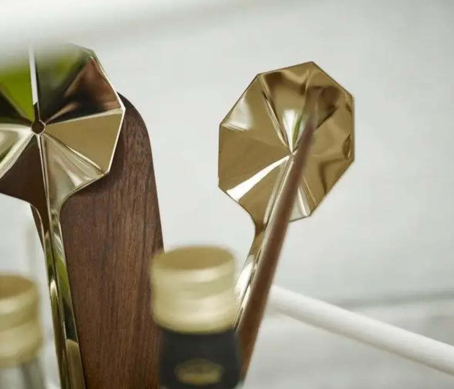 Dette salatbestik fra Fritz Hansen er designet af Maximilian Schmahl og adskiller sig med sit særlige bladformede design. Bestikket består af to skeer, hvoraf den ene har riller, og den anden er glat. Det fås i både messing og mørkegrå stål og tåler opvaskemaskine for nem vedligeholdelse.
