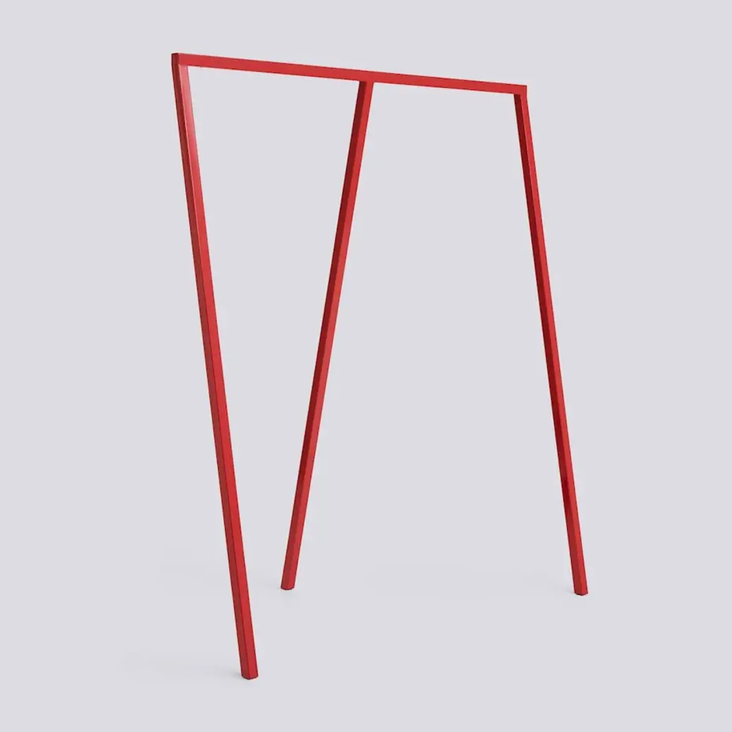 Dette garderobestativ fra Hays Loop stand-serie kombinerer dansk designtradition med praktisk funktionalitet. Det er konstrueret i pulverlakeret stål med en iøjnefaldende rød finish, der giver dit rum et friskt udtryk.