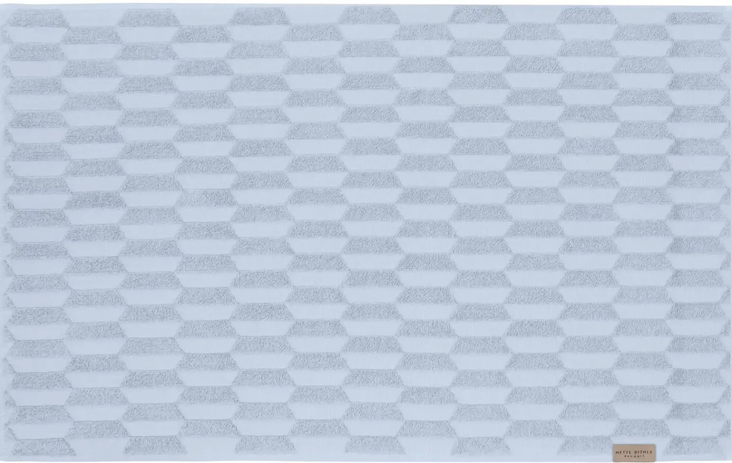 Tilføj et strejf af elegance og funktionalitet til dit badeværelse med Mette Ditmer GEO-bademåtten i en klar lyseblå farve. Den er lavet med en høj-lav vævningsteknik, som skaber et næsten tredimensionelt, grafisk mønster. Den sekskantede form, opdelt i lyse og mørke halvdele, giver en visuel dybde og en unik tekstur.