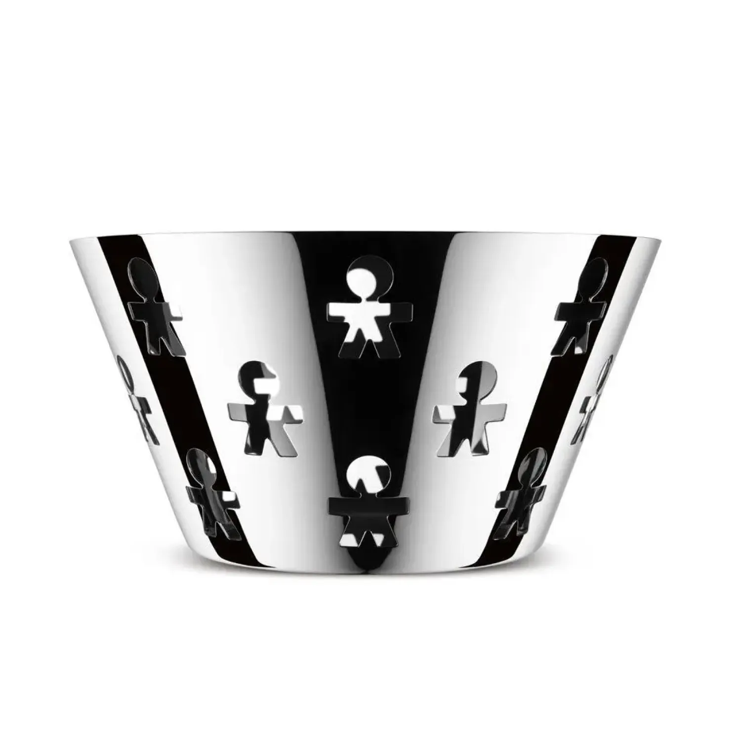 Denne serveringsskål i stål med en diameter på 23 cm kombinerer holdbarhed med kunstnerisk design. De karakteristiske udskårne menneskefigurer løber langs kanten og skaber et særligt udtryk, der gør hver servering til noget specielt.