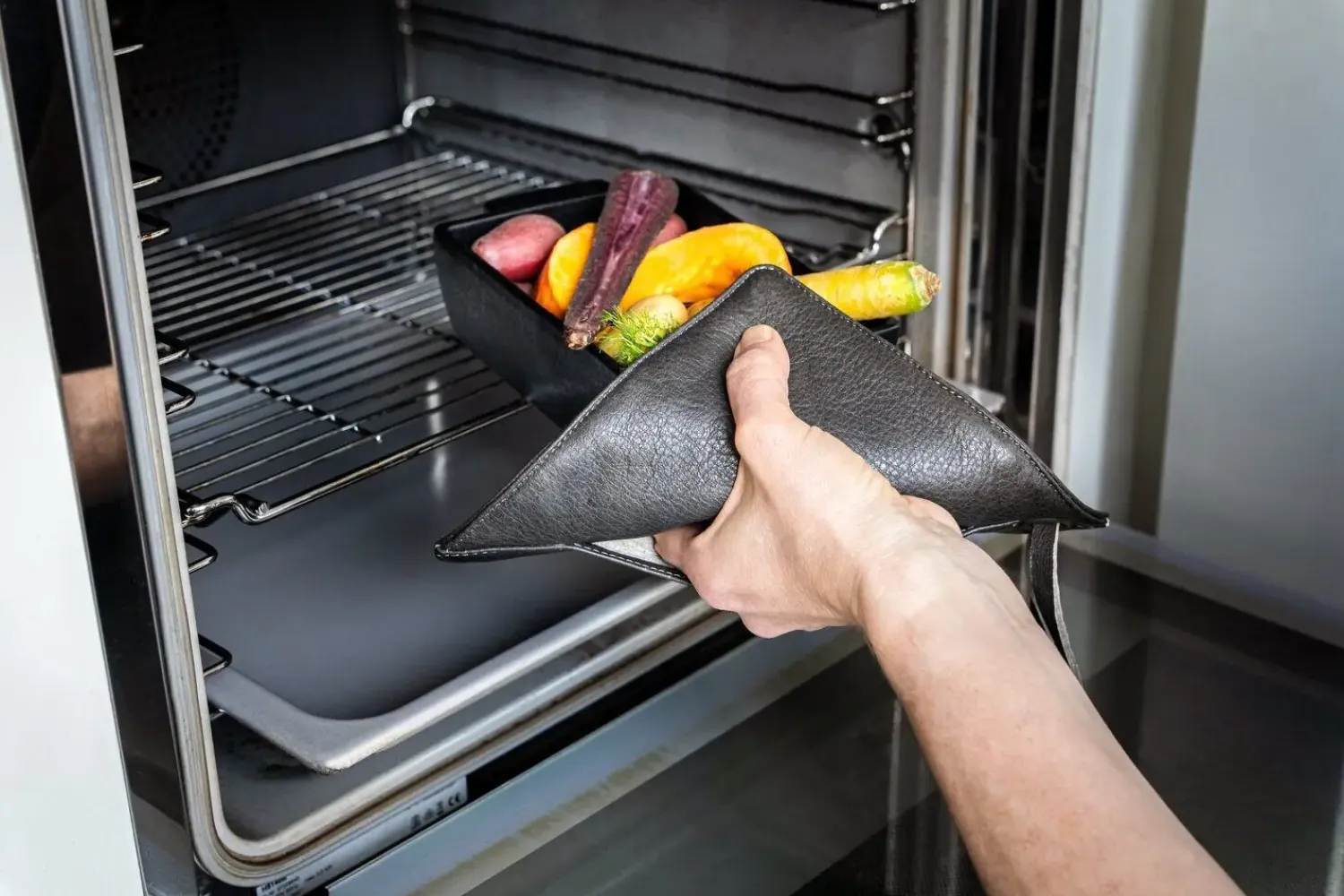 Smart grydelapp i fuldnarvet læder i gaveæske. Med sin integrerede indsats og varmebestandige foring vil denne grydelapp modstå varmen og give dig et bedre greb om tingene! Dine hænder er fuldt beskyttet af den varmebestandige foring, og for at få et bedre greb kan du stikke hånden i indsatsen, så det er nemmere at gribe fat i varme tallerkener og ovnfaste fade. De er lavet af det mest smidige fuldnarvede og REACH-certificeret læder og fås i alle farver, der matcher vores læderforklæder. De vil blive endnu smukkere med tiden: jo mere du bruger dem, jo pænere vil de se ud, da tiden vil skabe en patina, en blød glans, der udvikler sig på læderets overflade, da det er et naturprodukt, der ældes. En perfekt kombination med vores læderforklæder i alle farver og nemme at rengøre. Varmebestandig foring til normal brug op til 240 °C [460 °F].