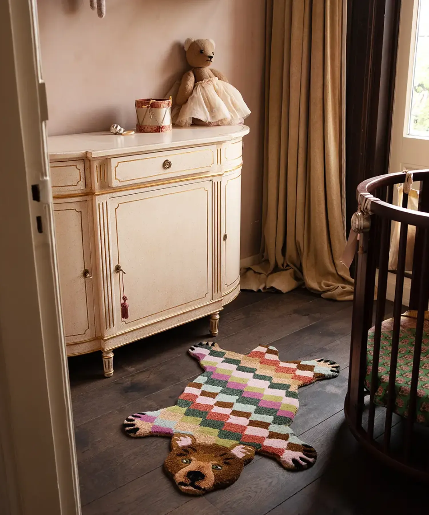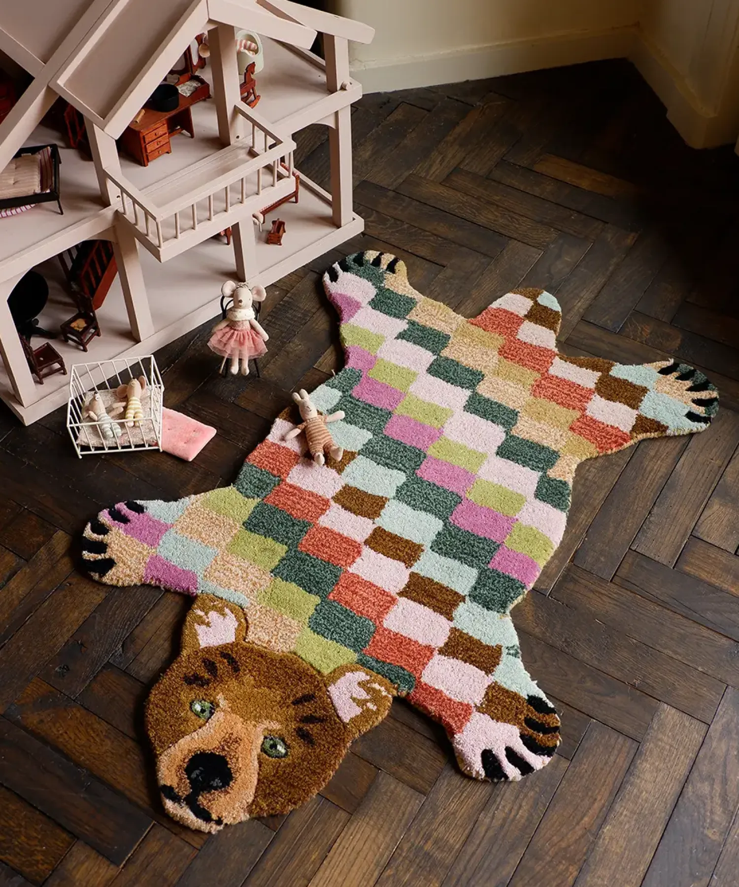 Super fint og sødt bjørne gulvtæppe fra Doing Goods. Tæppet er håndlavet af 100% uld, hvilket gør hvert enkelt tæppe helt unikt. Placer tæppet hvor som helst i hjemmet, brug det eksempel foran pejsen i stuen eller på gulvet i børneværelse. Tæppet kan også hænges op på væggen.