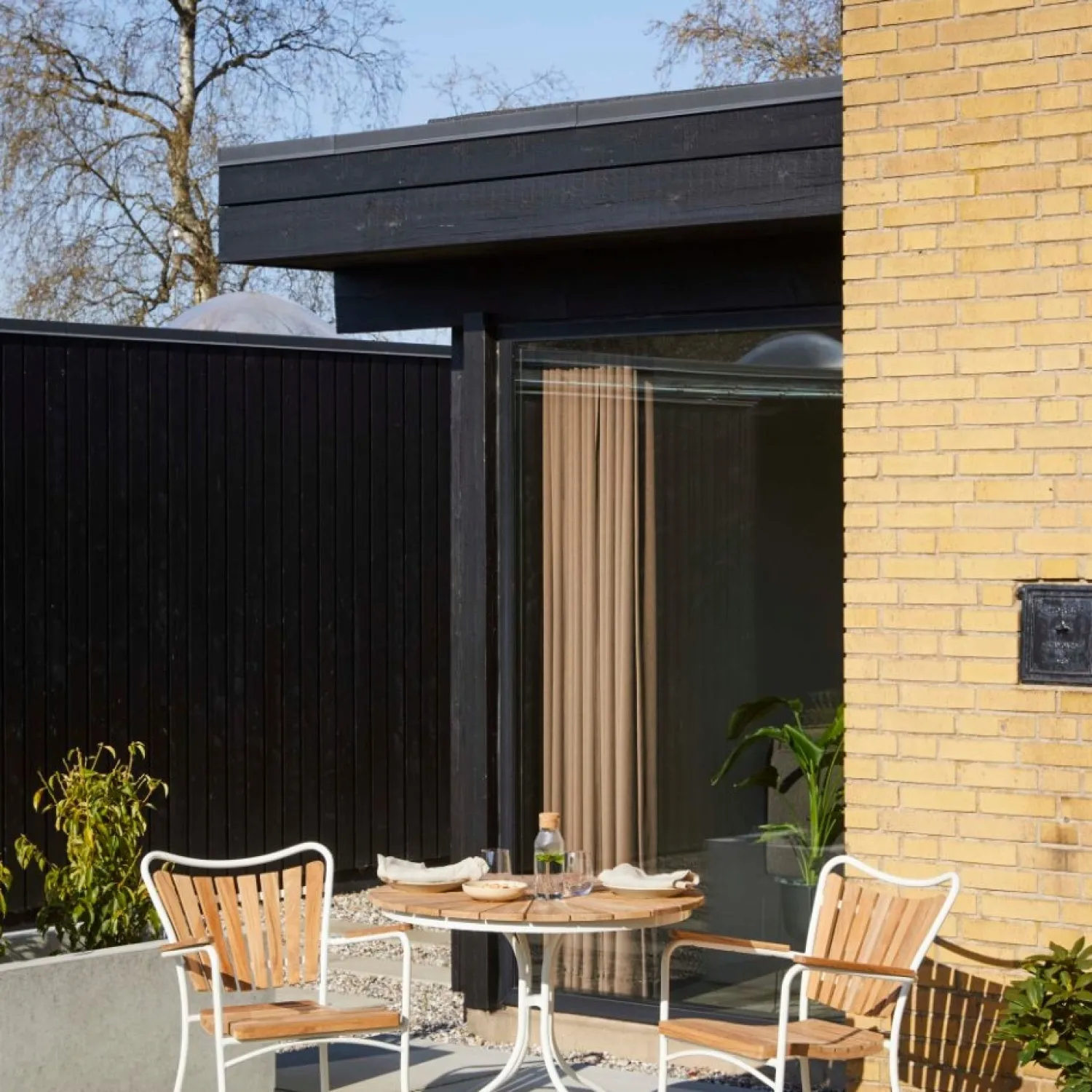 Giv din terrasse eller have et strejf af skandinavisk design med dette runde cafébord. Dette bord er designet til udendørs brug og kan bruges til måltider og afslapning i det fri.