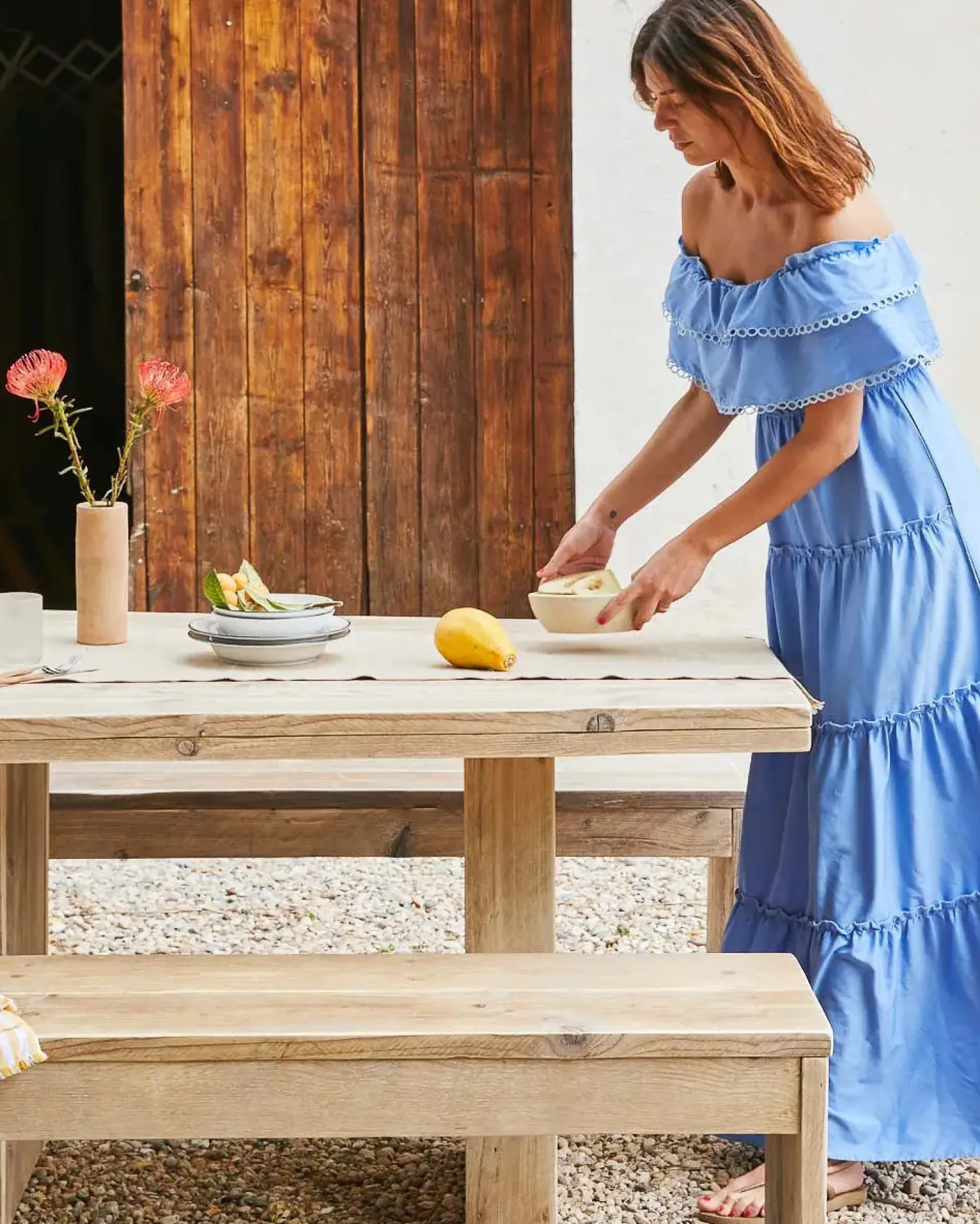 Mecia-udendørsbordet er håndlavet i lokale europæiske værksteder og er en erklæring om principper til fordel for en mere bæredygtig og bevidst livsstil.