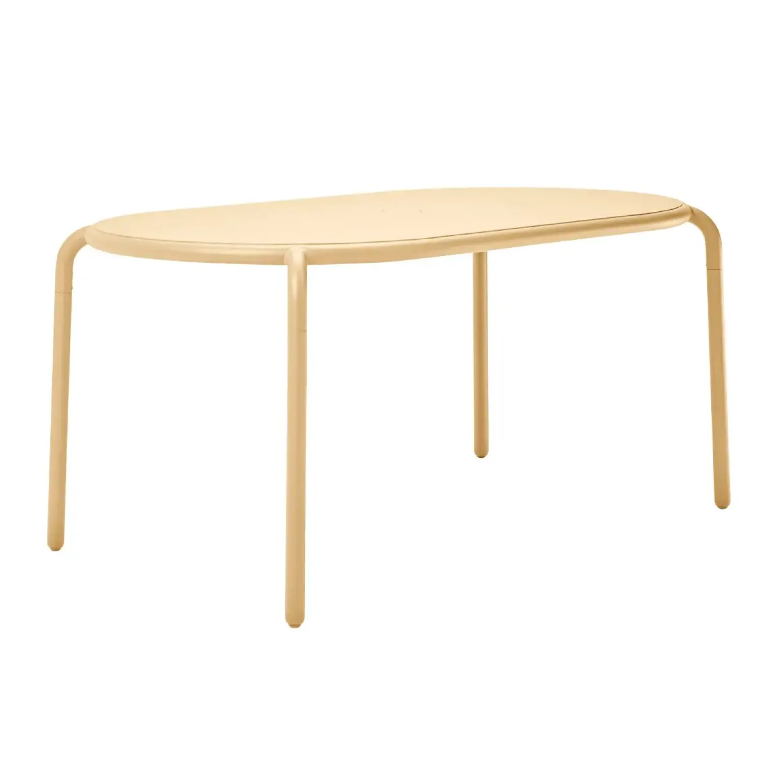Toní Tavolo havebordet er fremstillet af let aluminium, hvilket gør det nemt at flytte efter behov. De justerbare bordben sikrer optimal stabilitet på forskellige underlag, mens den ovale bordplade med glat overflade giver et rent og behageligt udtryk. Coatingen af høj kvalitet beskytter overfladen og sikrer, at den beige farve bevares over tid.