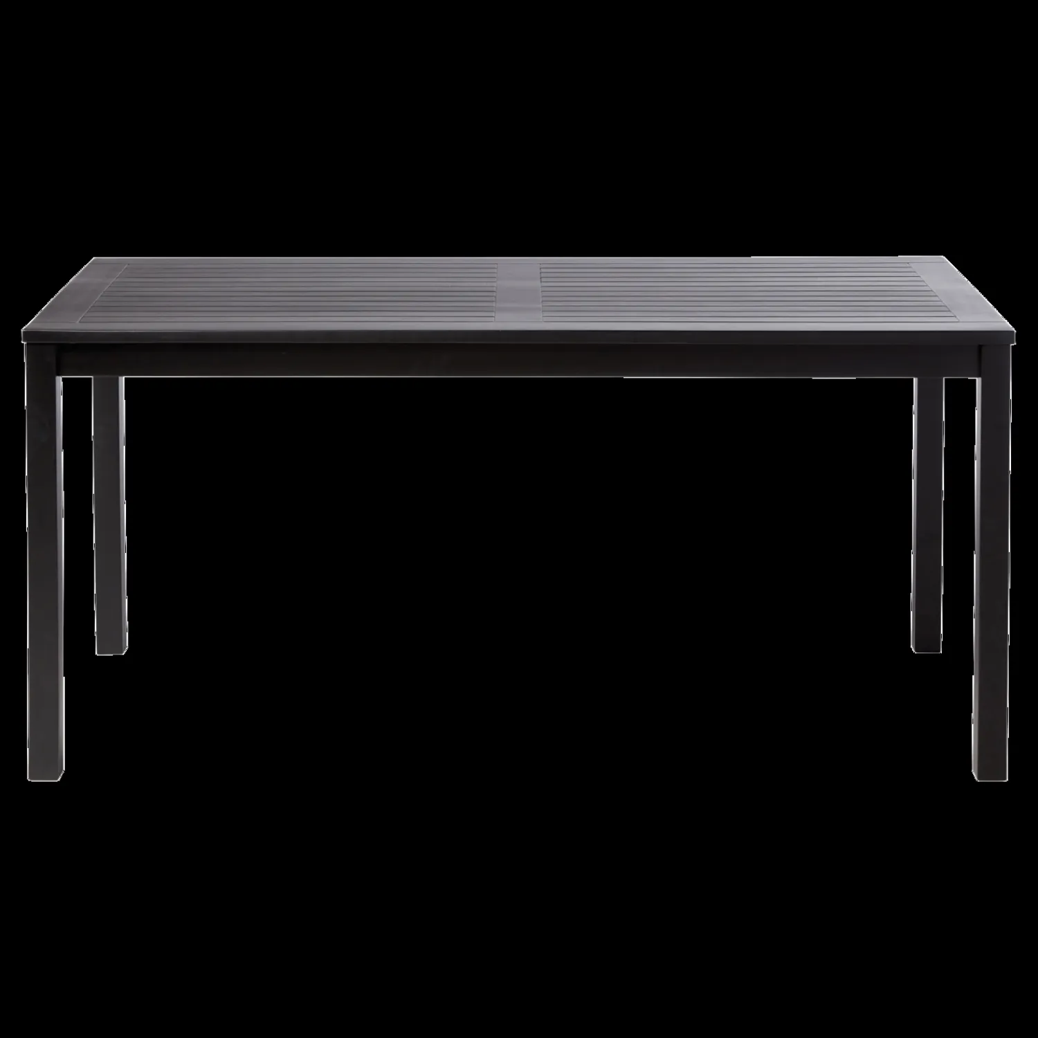 - Sættet inkluderer ét bord (165 x 80 x 75 cm), én bænk (150 x 58 x 89 cm) og to armstole (B59 x D59 x H89 cm).