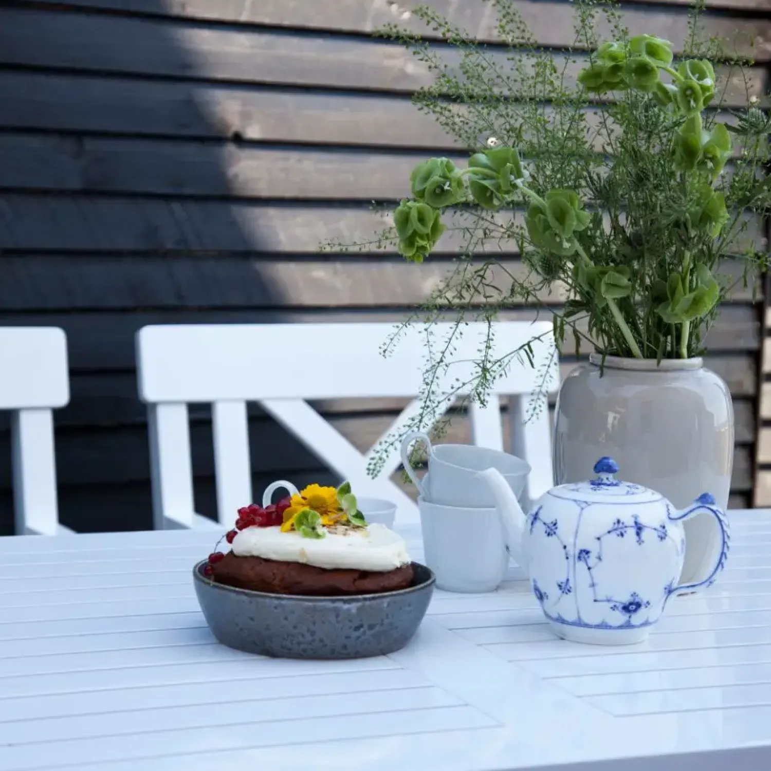 - Sættet inkluderer ét bord, én bænk og to stole.