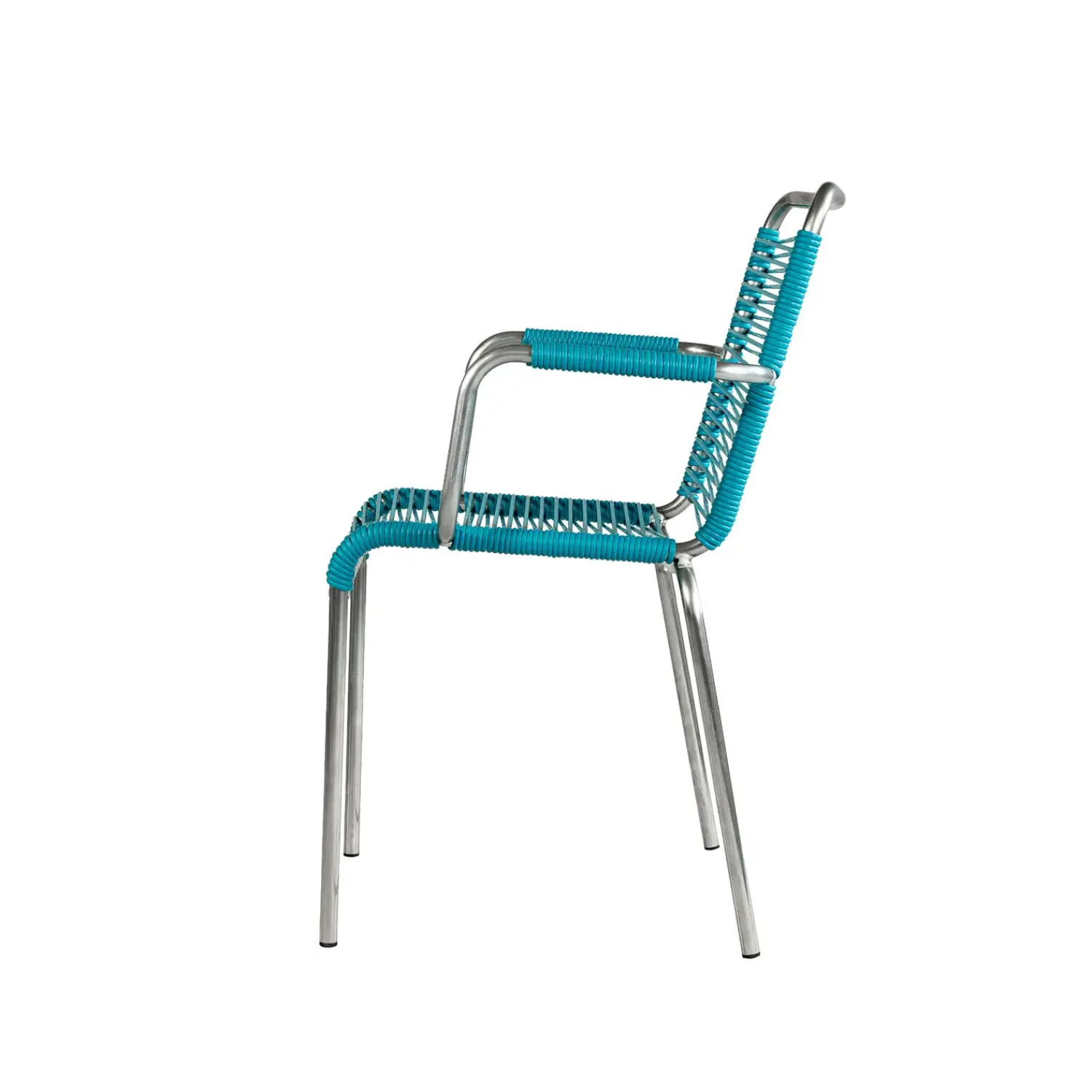 Fiam – Havestol – Mya spaghetti m. armlæn – Turkis/Blå er en harmonisk blanding af stil og funktionalitet til din udendørs oase. Designet af Ennio Favagrossa tilbyder denne elegante havestol en bemærkelsesværdig kombination af håndværk og moderne æstetik. Det innovative håndvævede PVC spaghetti design, der dækker sæde, ryg og armlæn, giver ikke kun stolen et distinkt udseende, men sikrer også komfort og et moderne look.