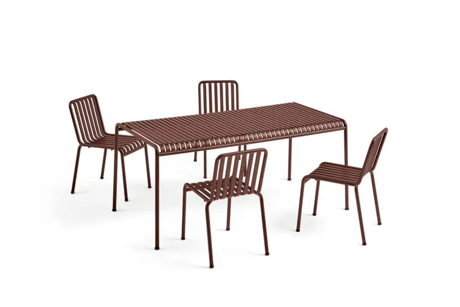 Fremstillet af elektrogalvaniseret, pulverlakeret stål kombinerer HAY havestol – Palissade stol – Rød – Iron red holdbarhed med et distinkt udseende. Stolen er designet i farven Iron red, som giver et karakteristisk udtryk til dine udendørs omgivelser. Materialets egenskaber gør stolen modstandsdygtig over for forskellige vejrforhold, hvilket gør den egnet til brug året rundt. Palissade-serien omfatter forskellige havemøbler, herunder stole, borde og bænke, hvilket giver mulighed for at skabe et sammenhængende udendørs miljø. Den enkle udformning gør stolen let at integrere i forskellige indretningsstile, uanset om du foretrækker et moderne eller mere klassisk havemiljø. Med HAY Palissade stolen kan du indrette et funktionelt udendørs rum, der inviterer til afslapning og nydelse af naturen. Stolen er designet af HAY og er en del af deres serie af udendørsmøbler, der kombinerer praktisk anvendelighed med et gennemtænkt design tilpasset udendørs brug. Alle HAY Palissade-møbler er certificeret efter internationale standarder for udendørsmøbler, hvilket sikrer deres kvalitet og sikkerhed.