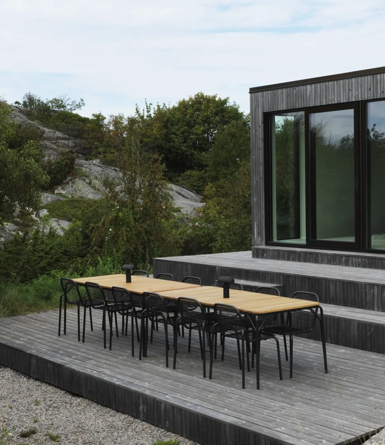 Denne havestol fra Vig-serien er konstrueret til at holde år efter år i det danske vejr. Med dobbelt pulverlakeret stål eller olieret robinia-træ får du en stol, der bevarer sit flotte udtryk udendørs.