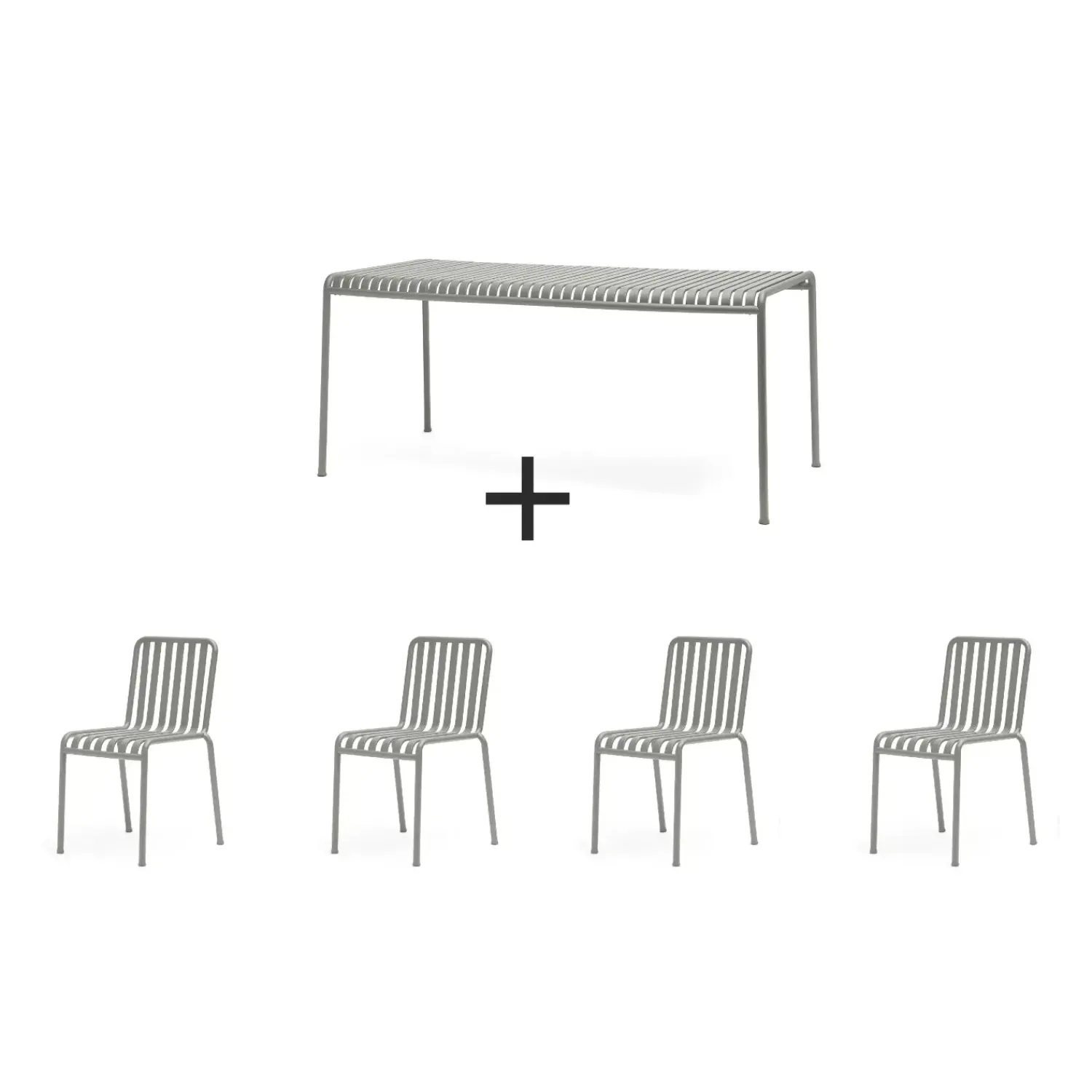 Palissade-sættet fra HAY bringer stilren komfort til din have eller terrasse. Dette lysegrå møbelsæt forener funktionalitet med et tidløst design, skabt til at forskønne dine udendørsarealer og invitere til hyggelige stunder under åben himmel.
