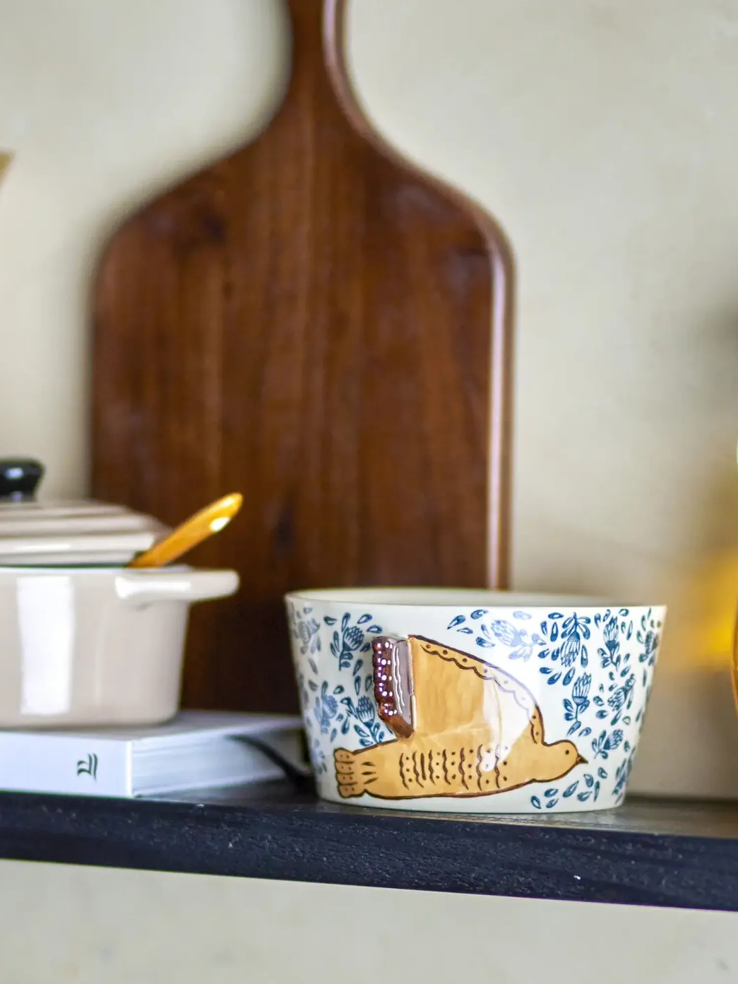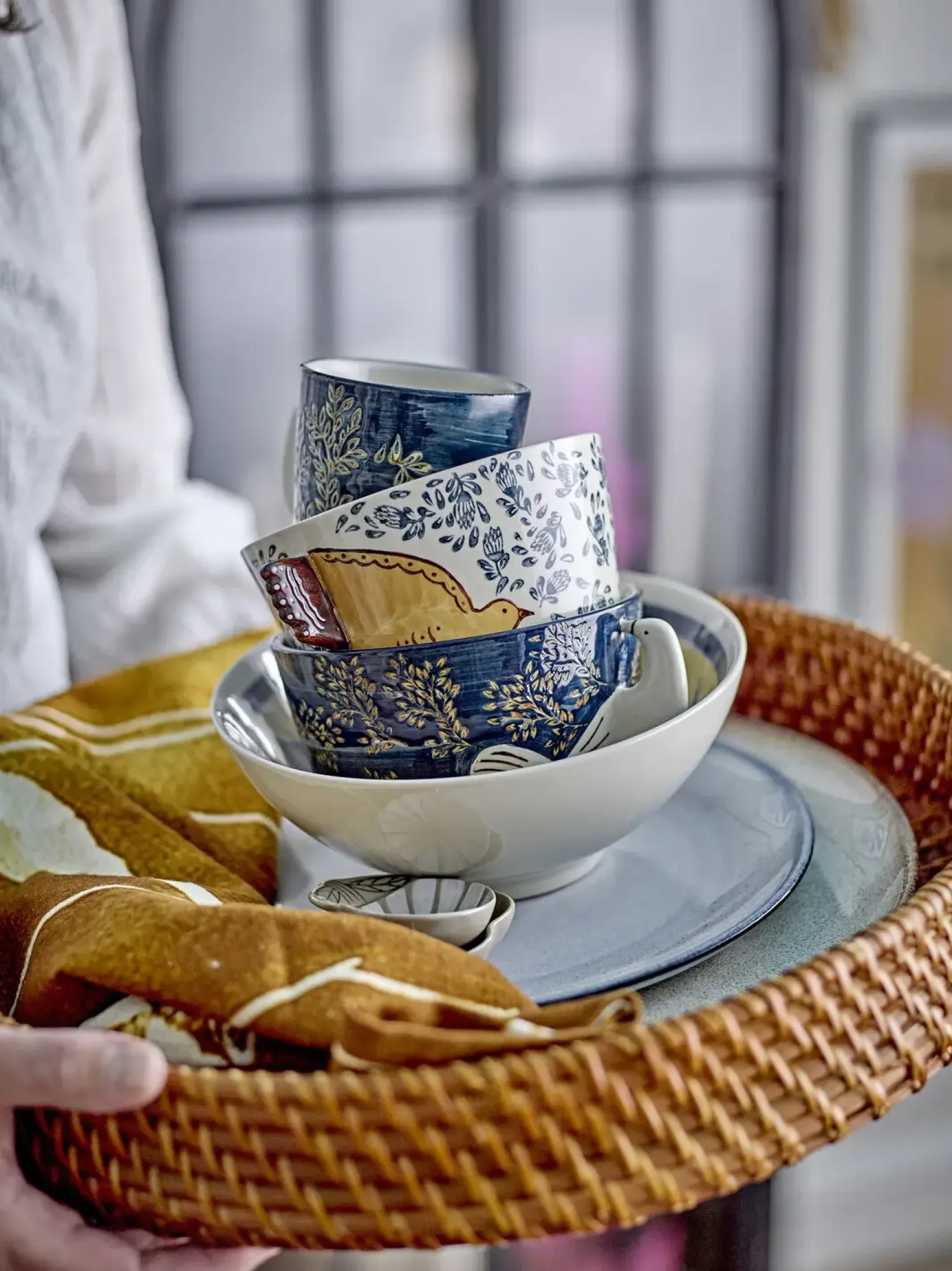 Hezha Bowl fra Bloomingville er lavet af stentøj og håndmalet med et smukt fuglemotiv. De blå og brune nuancer giver et roligt udtryk til skålen. Da det er håndmalet, kan der forekomme variationer i farve og mønster. Skålen er både praktisk til hverdagsbrug og smuk som pynt.