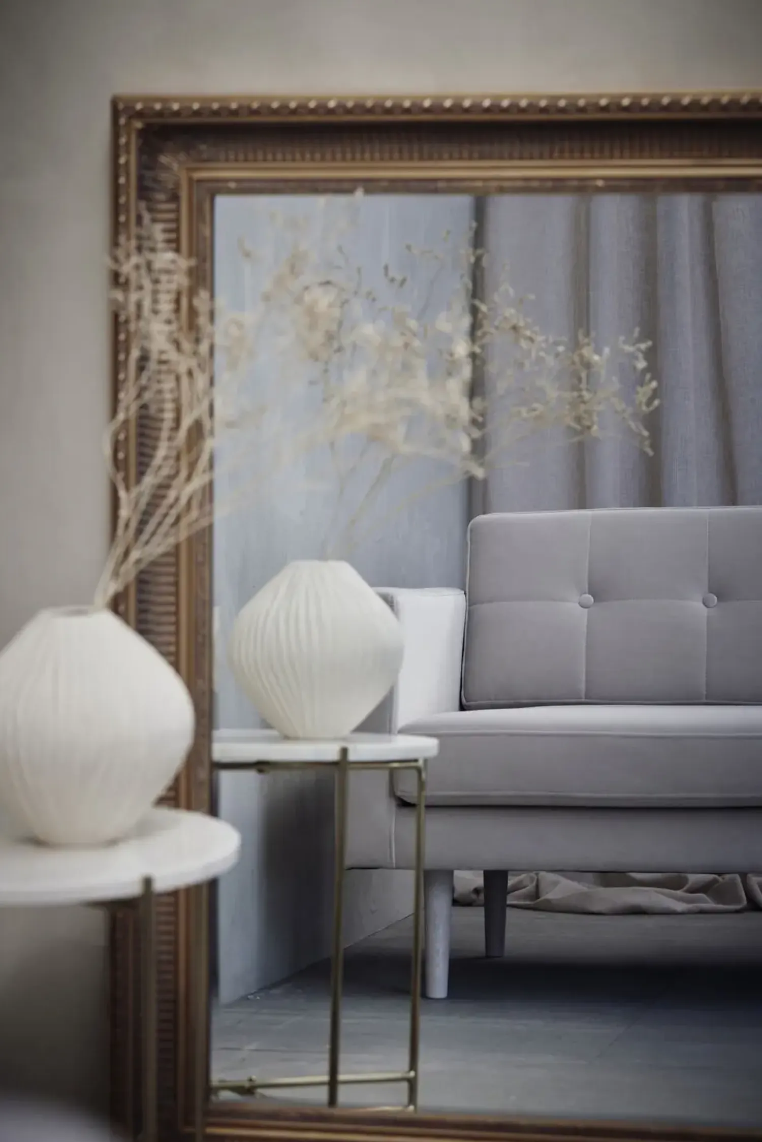 Vores smukke Hilia spejl passer perfekt ind i ethvert rum i dit hjem. Spejlet er håndlavet, og rammen er lavet af træ, hvilket giver det et storslået og tidløst udtryk. Det er både dekorativt og praktisk på samme tid. Et spejl er med til åbne et rum op og skabe dimension ved at reflektere lyskilder på tværs af rummet.