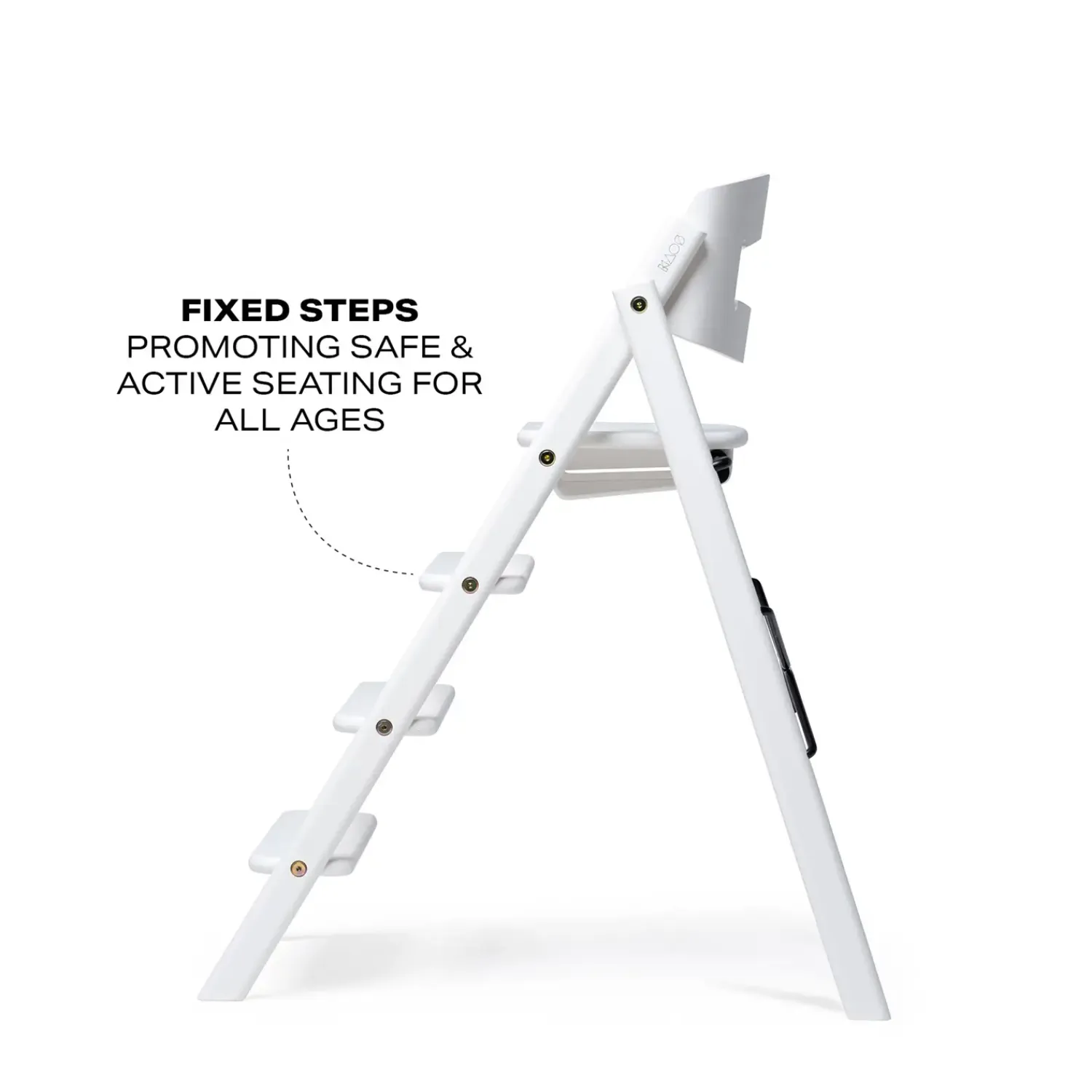 Denne højstol i hvid bøg følger dit barn fra 6 måneder helt op til 8 år. Den ergonomiske siddestilling støtter barnets udvikling, mens de indbyggede trin gør det nemt og sikkert for barnet at klatre op og ned selv.