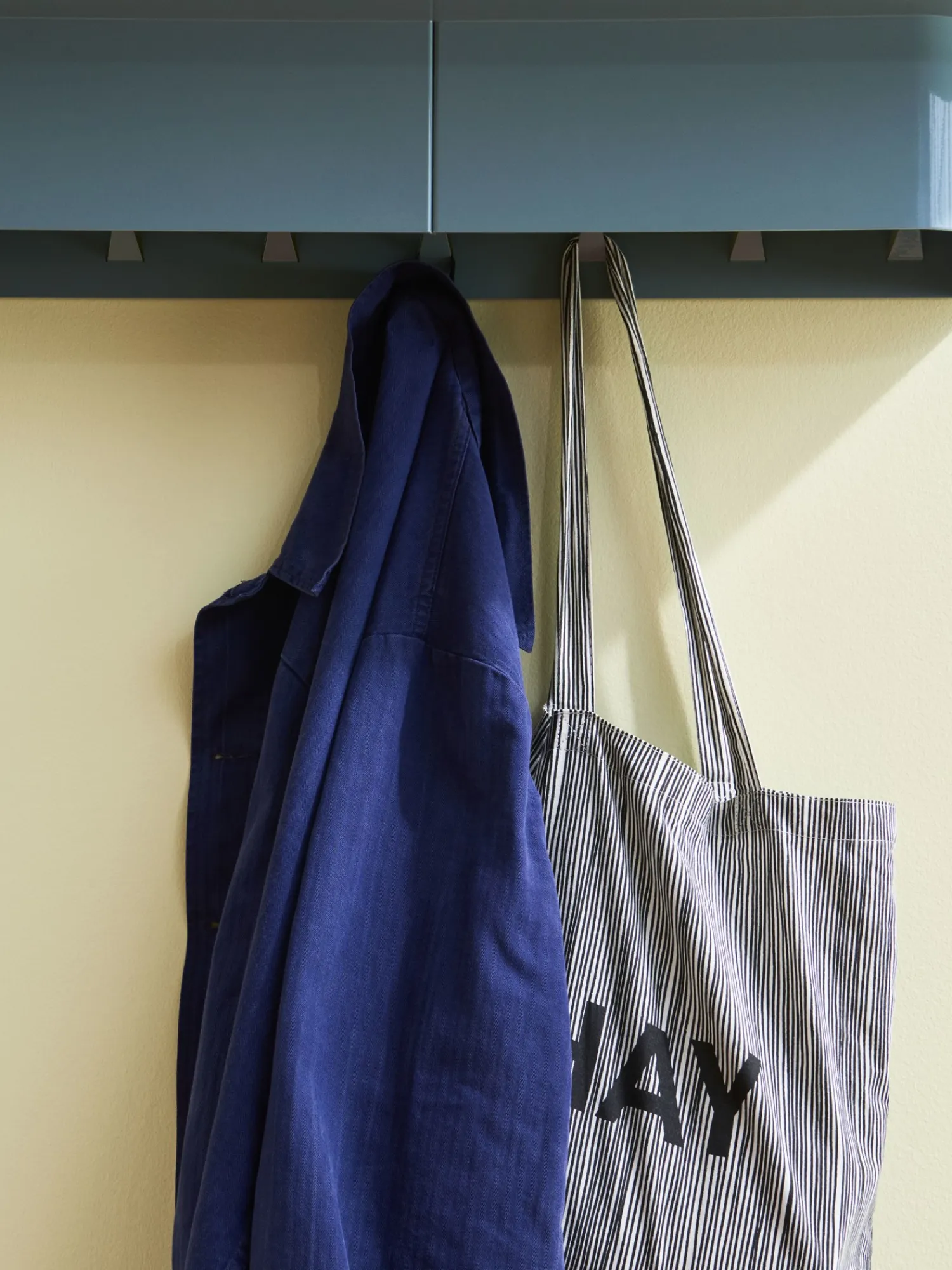 Denne lyseblå hylde fra HAY kombinerer smart opbevaring med praktisk funktionalitet. Med en bredde på 90 cm, dybde på 25 cm og højde på 14 cm får du god plads til dine ting, mens de skjulte kroge giver ekstra anvendelsesmuligheder.